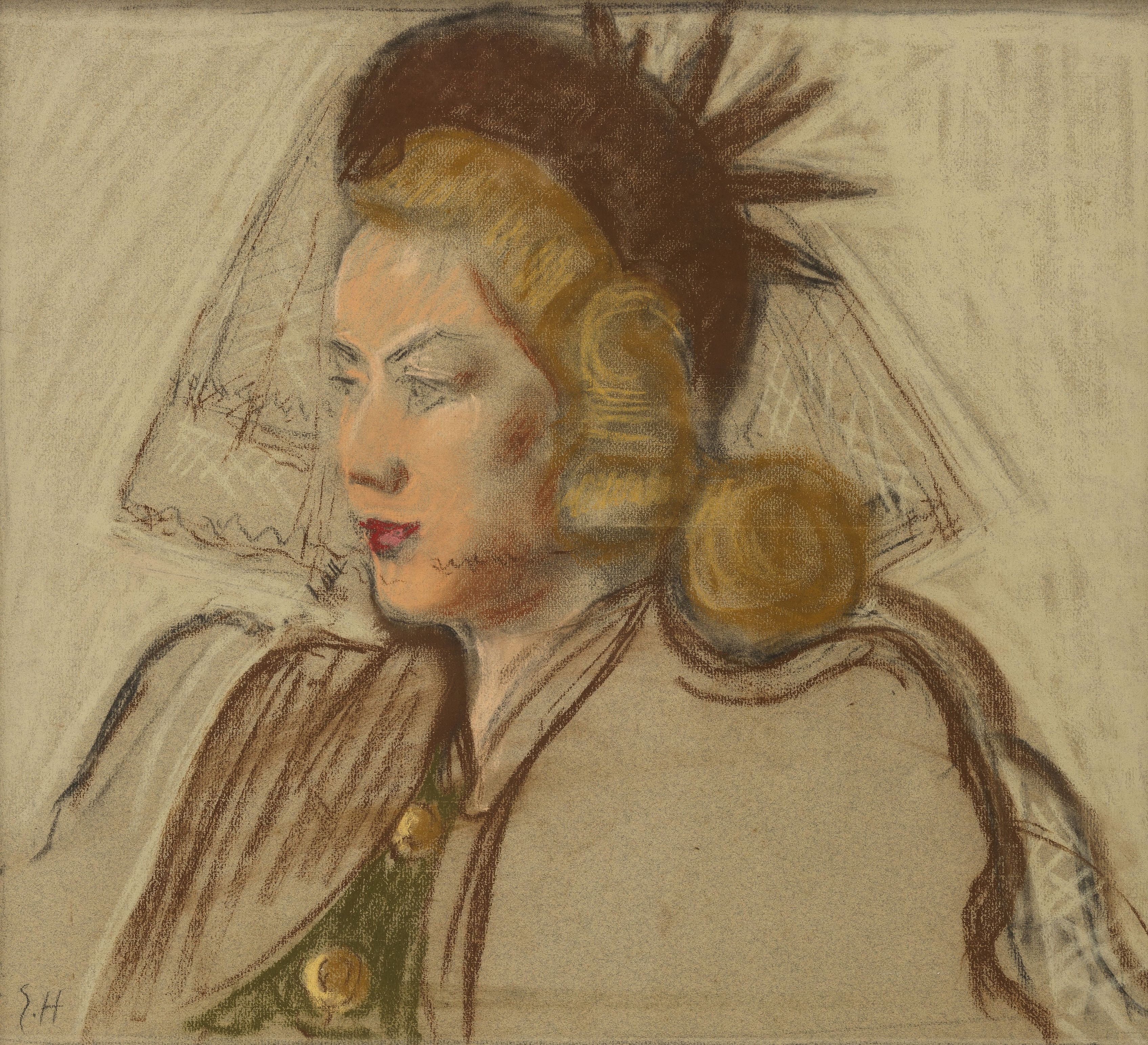 Nadia à la voilette, pastel sur papier, monogrammé, 41x46,5 cm