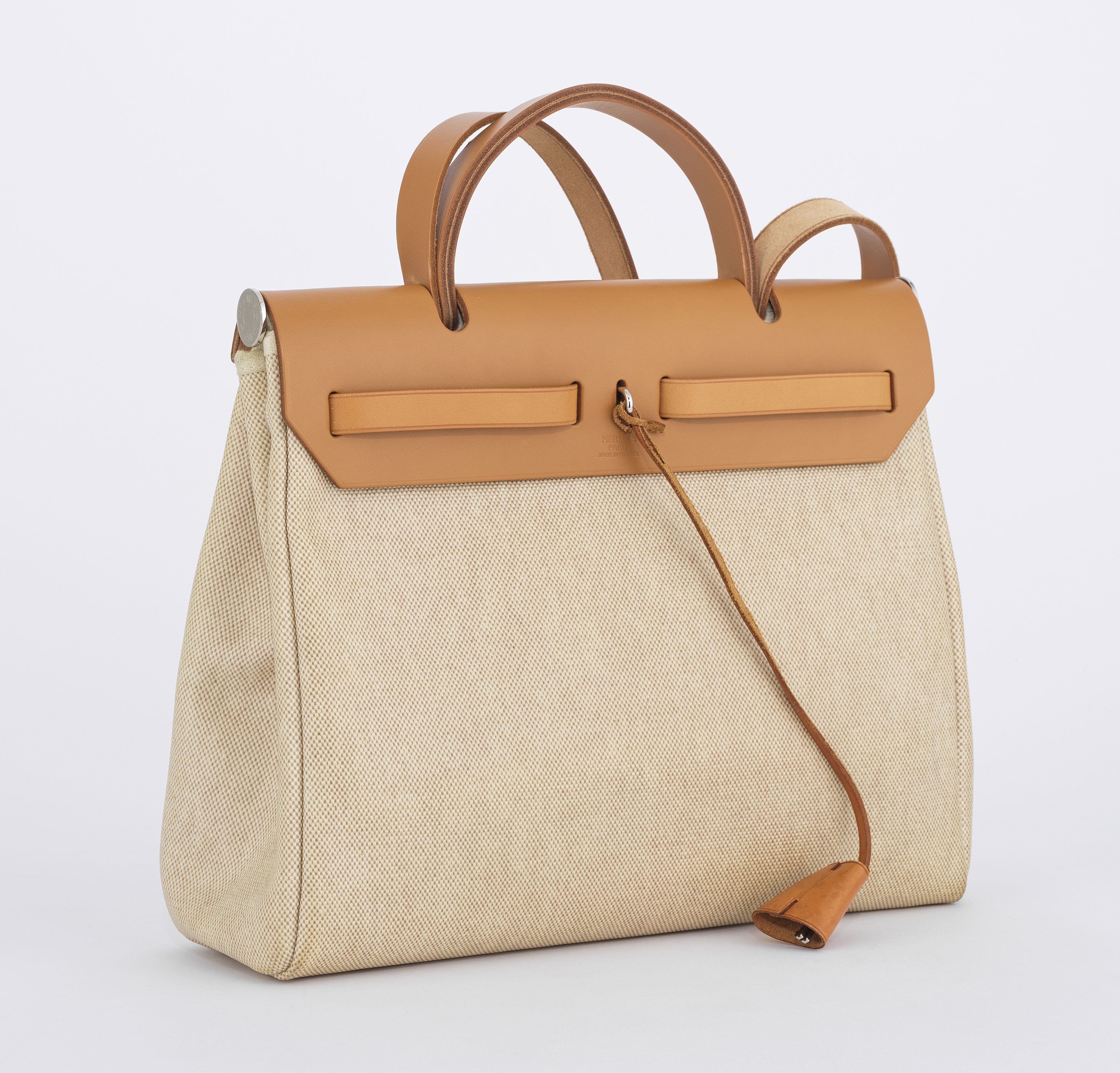 Toile enduite chinée beige et cuir naturel, anse bandoulière, 26x30x11 cm
