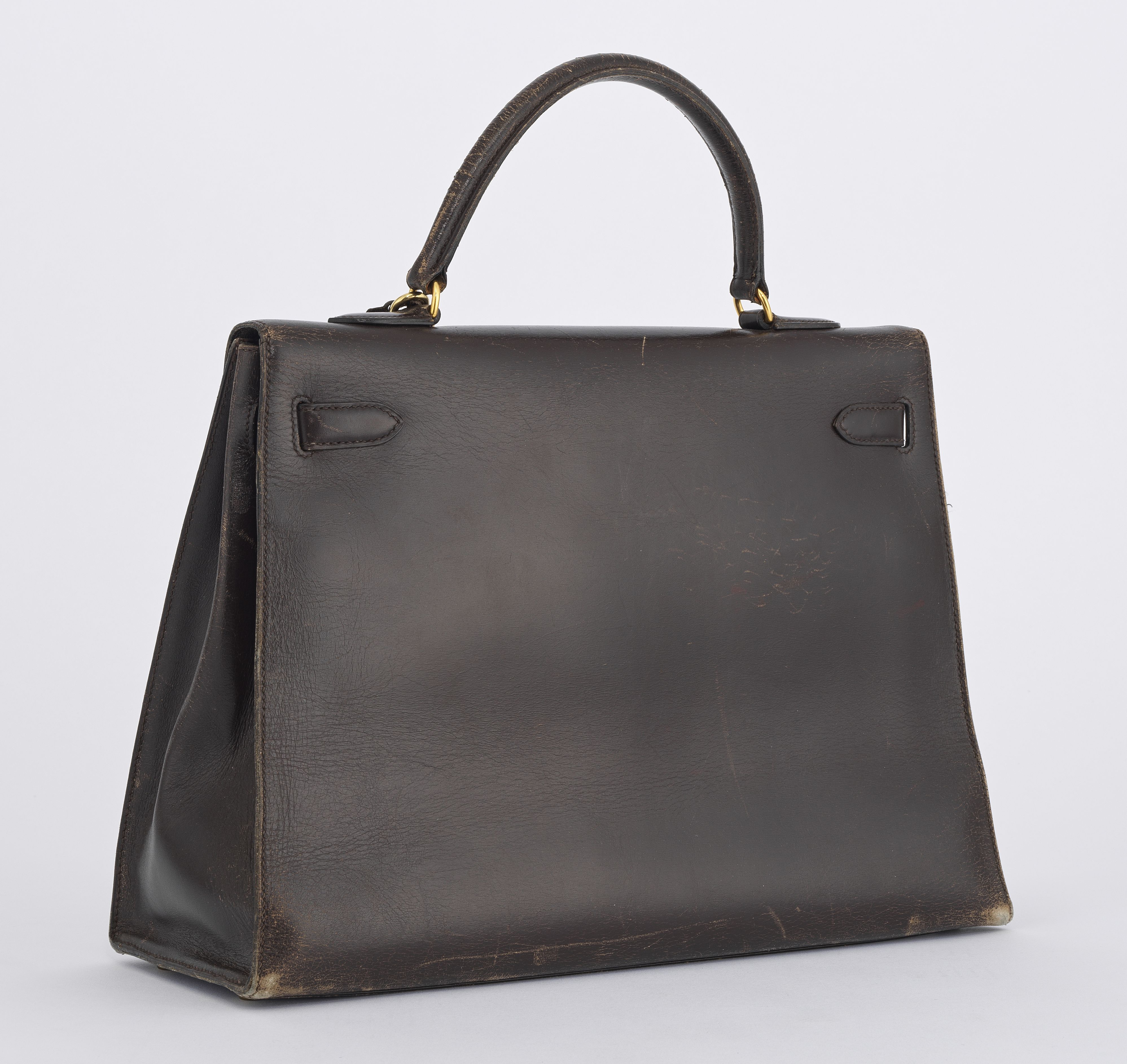 Cuir lisse brun, clé et cadenas dorés, lettre M encerclée pour 1983, 35,5x25x13 cm