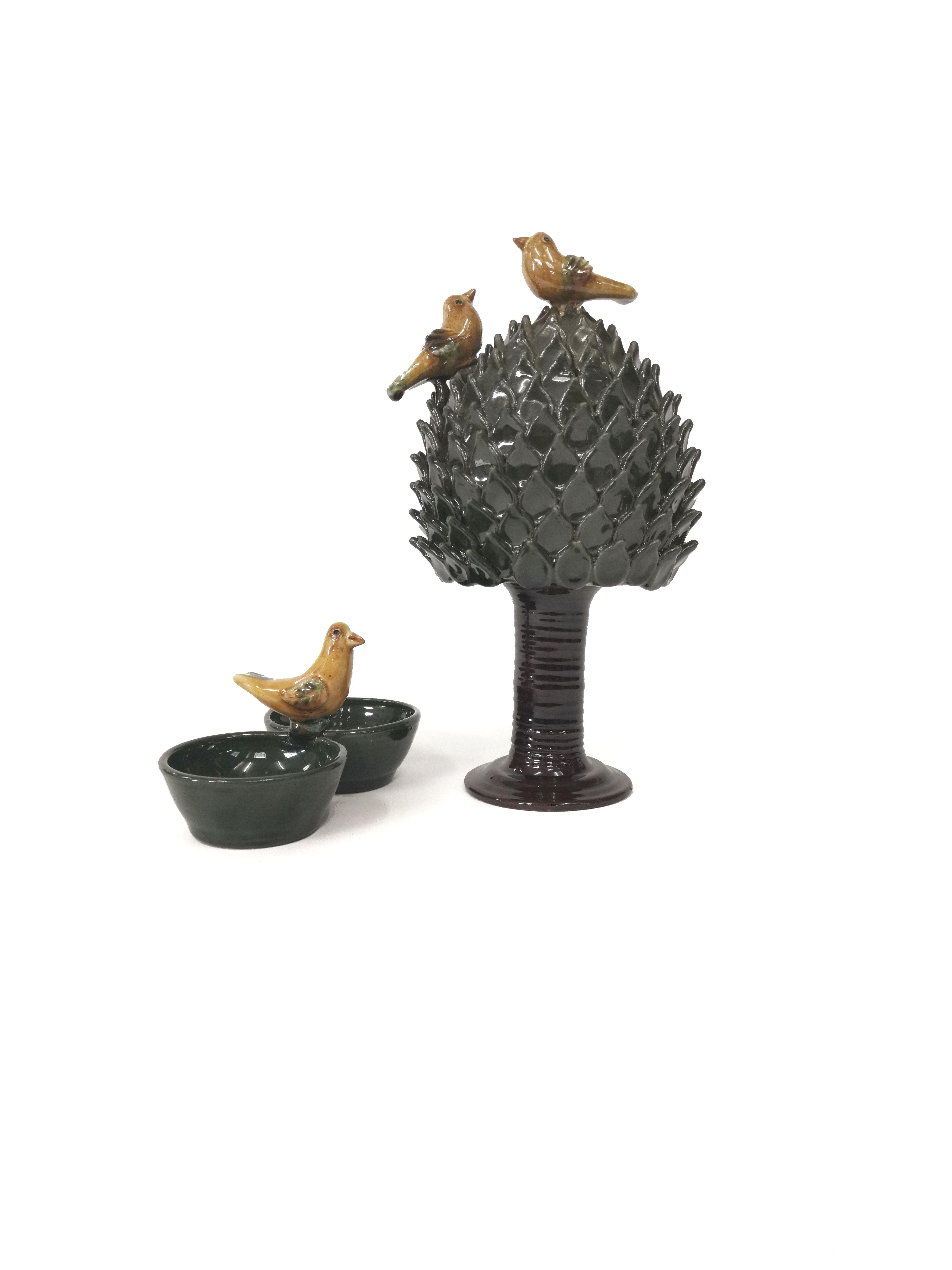 Oiseaux sur un arbre, céramique émaillée polychrome, H 26 cm. On joint un vide-poche, L 14 cm.