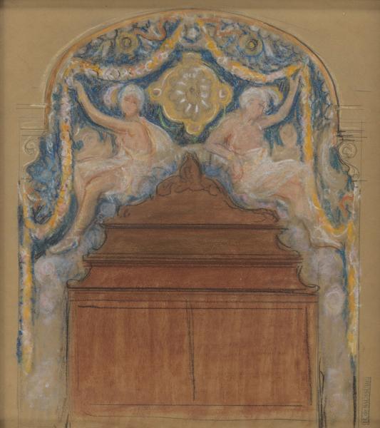 Femme jouant de la mandoline, étude, mine de plomb, cachet de l'...