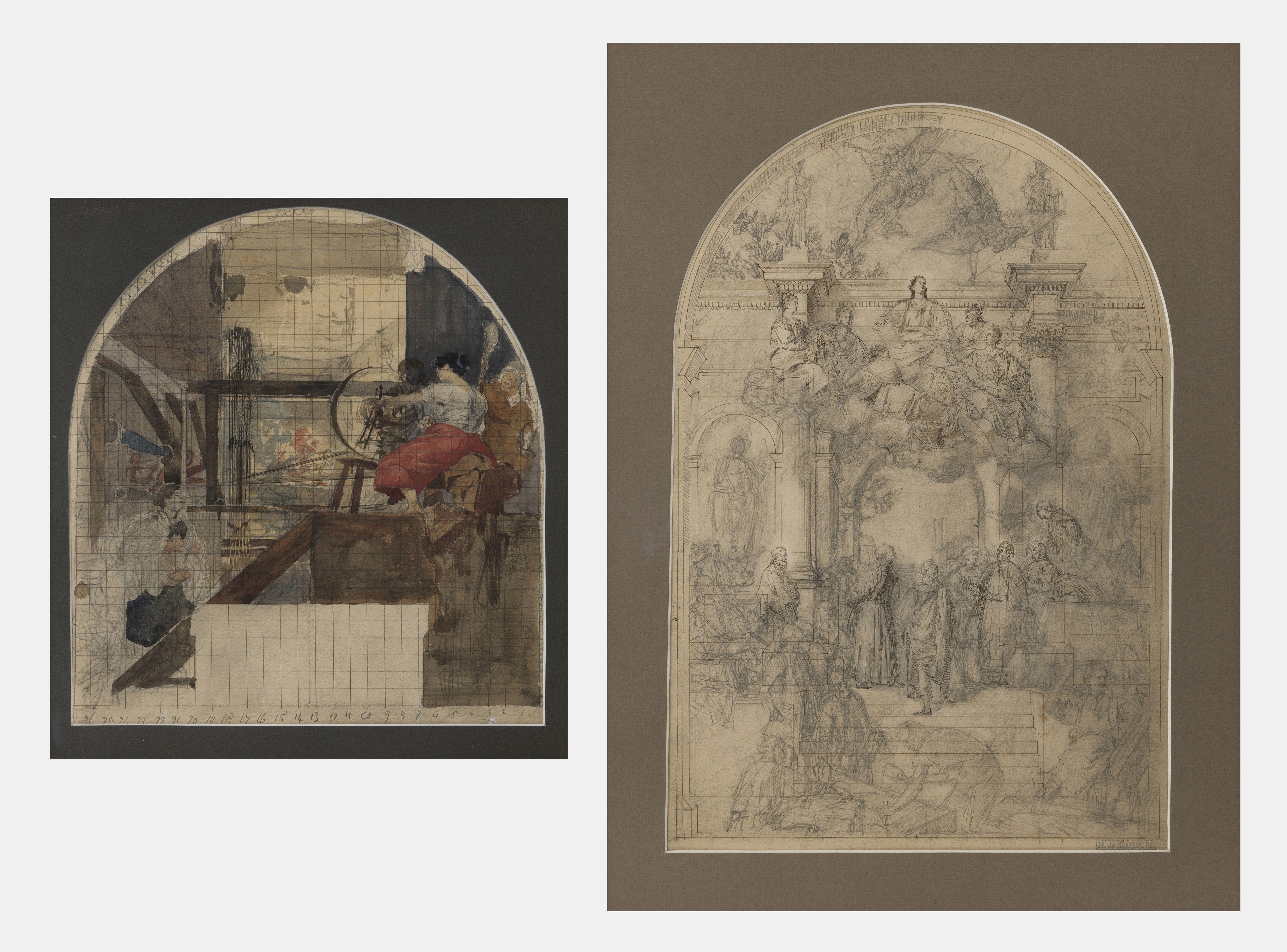 Etude d'éventail à décor de personnages, encre sur papier, cache...
