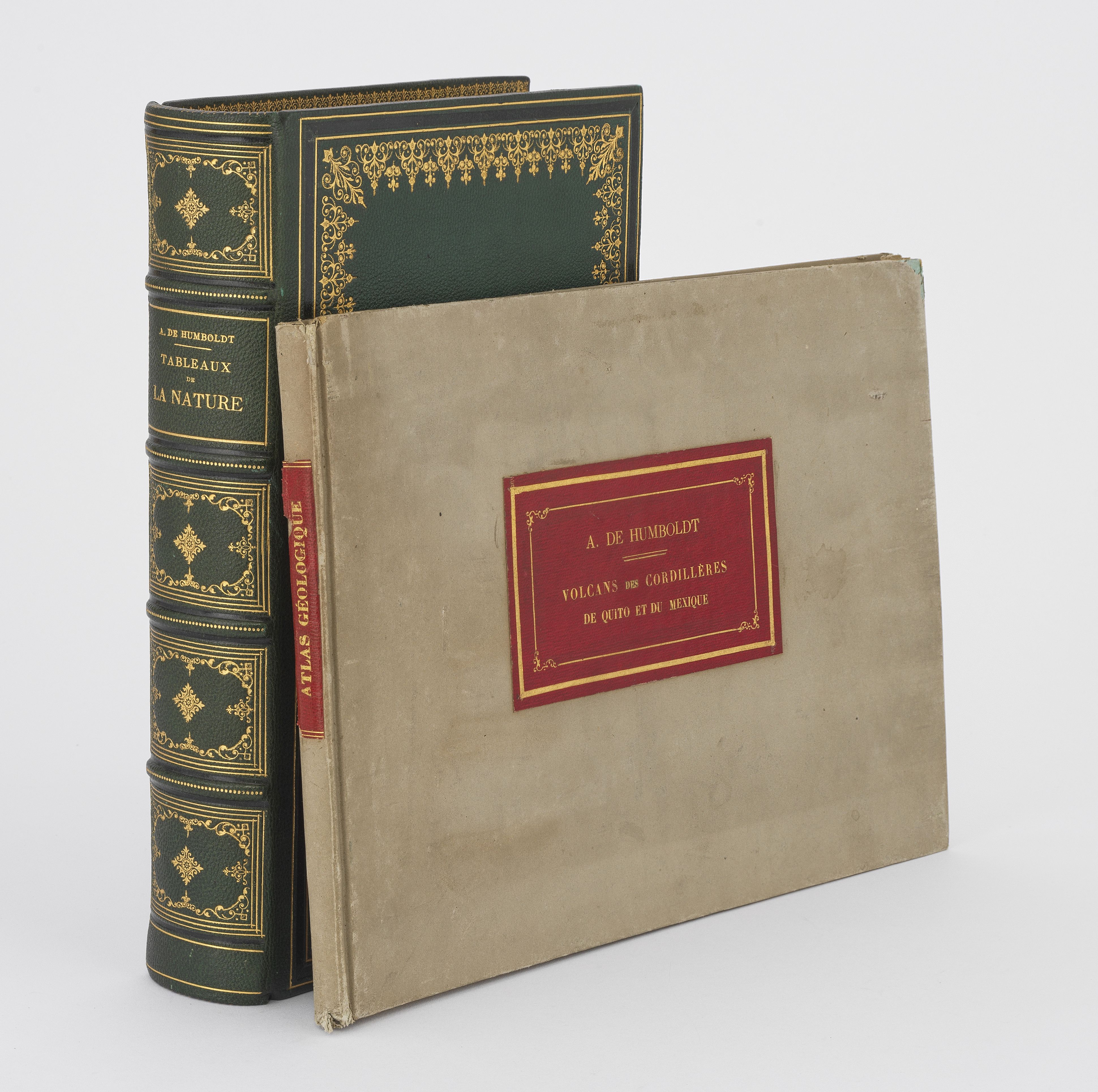Paris, Guérin et Morgand, 1866, grand in 8°, plein chagrin vert très orné, tranches dorées. Reliure de l’époque. On joint : HUMBOLDT : Volcans des Cordillères de Quito et du Mexique. Paris, Morgand, 1864 ; in 8° oblong, cartonnage de l’époque. Ex. complet des 12 pl. hors-texte.