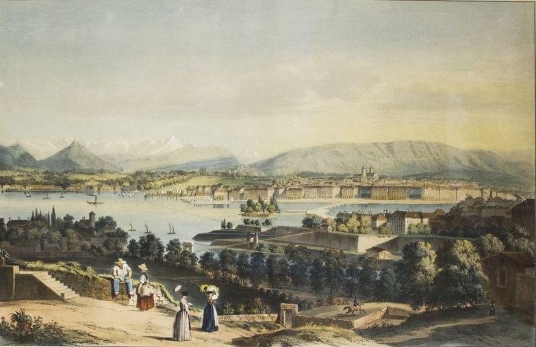 Vue générale de Genève, lithographie en couleurs, 48x67 cm