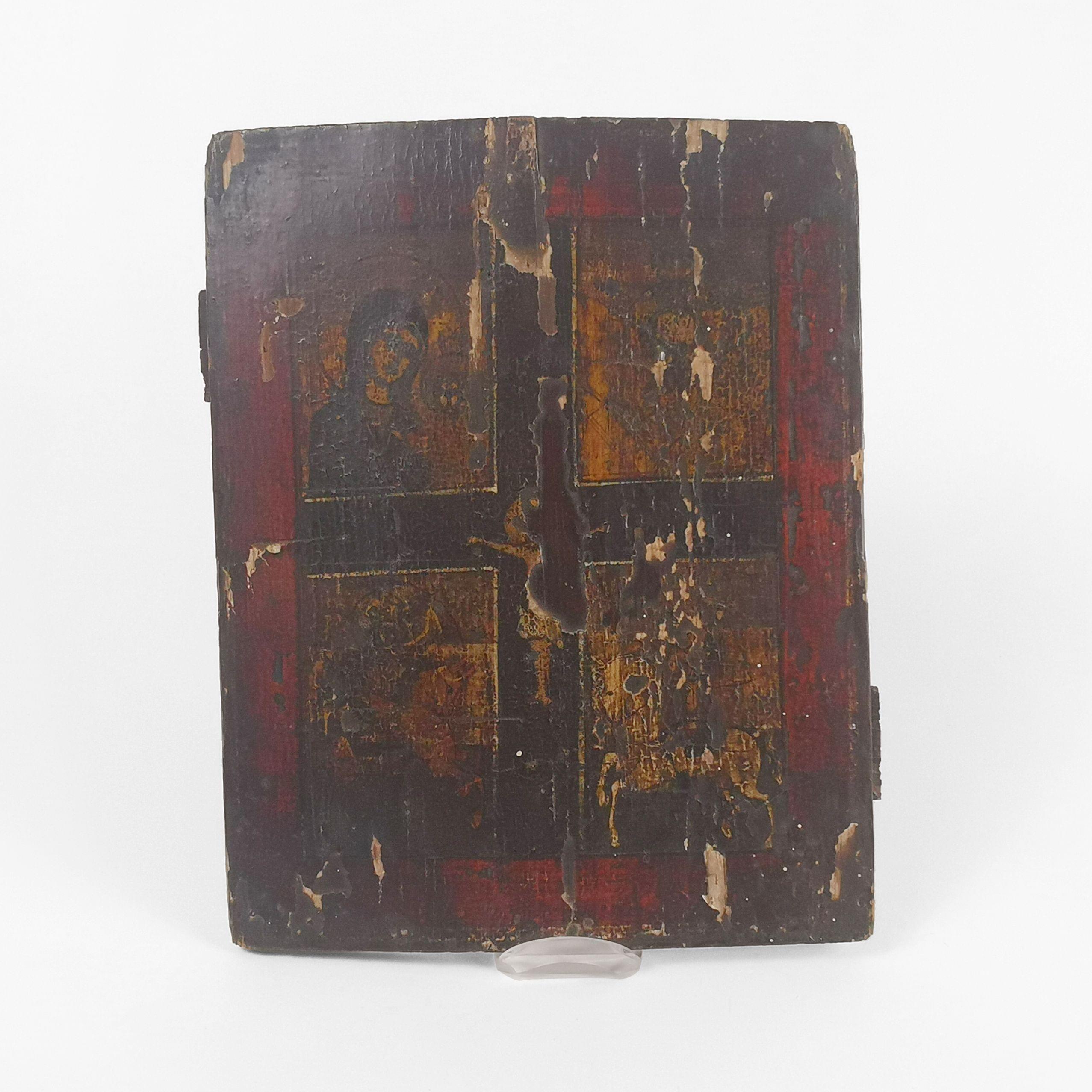La mère de Dieu, Saint Nicolas, Saint George et Saint Démétrius, partagée par la croix au centre, tempera sur panneau, 29x24 cm