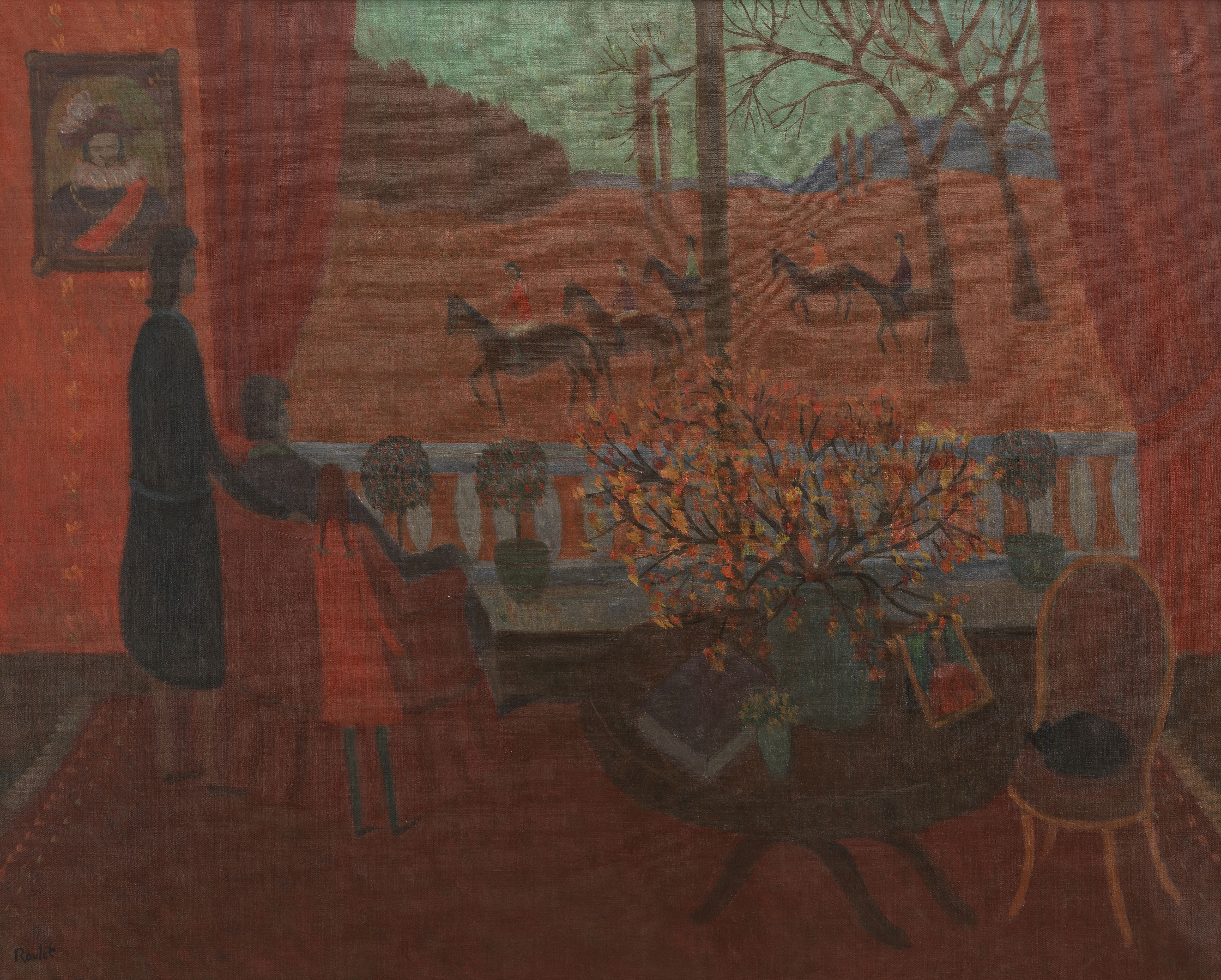 Automne par la fenêtre, huile sur toile, signée et datée 1976, 7...