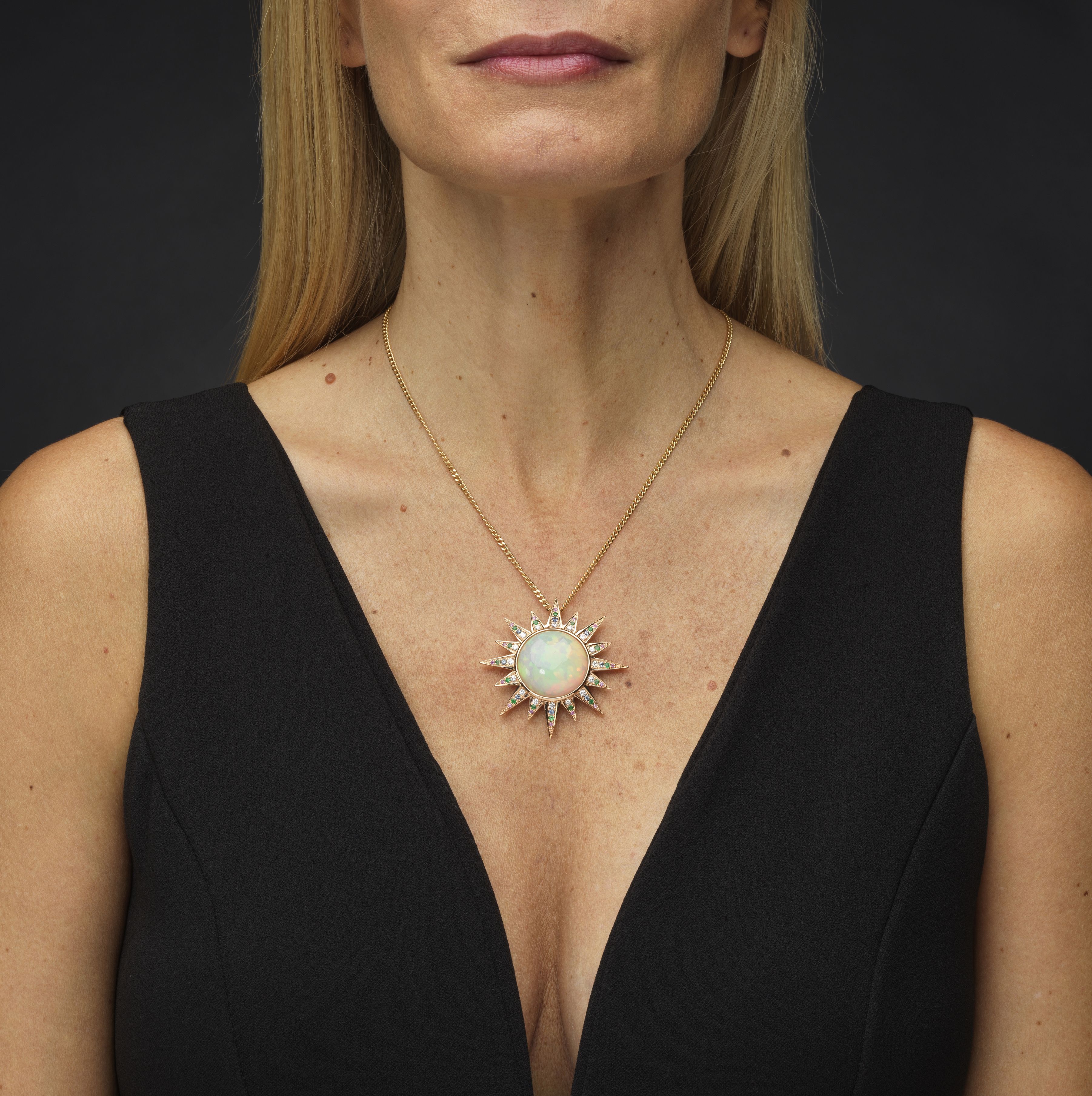 4626. *Important pendentif à motif de soleil centré d'une opale