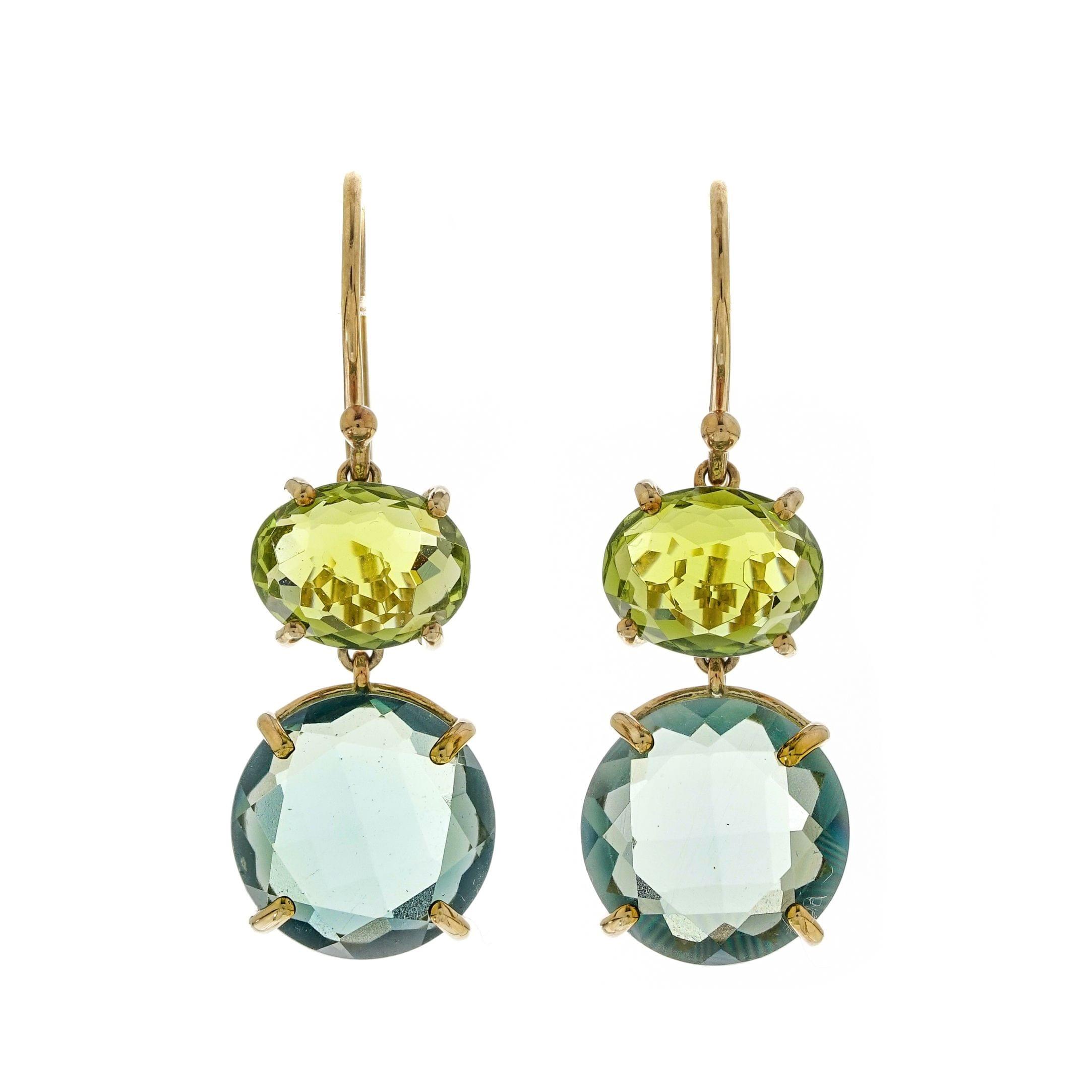 1056. Ippolita, boucles d'oreilles serties d'une topaze bleue ronde surmontée d'un péridot ovale