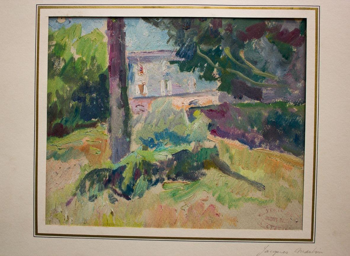 La maison au fond du jardin, huile sur papier, cachet de l'atelier, 21x25