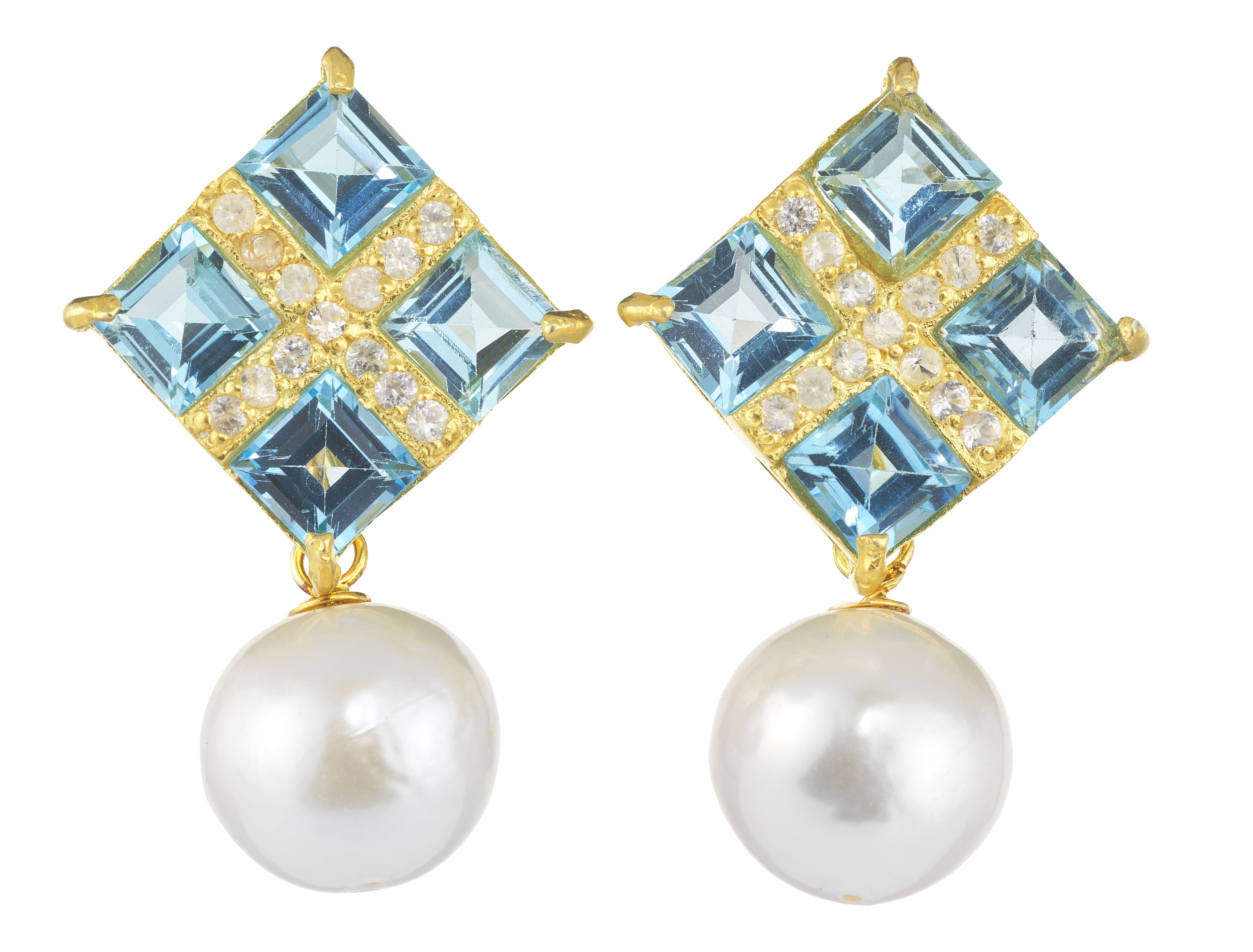 Rehaussées de topazes blanches et retenant une perle (D env. 10...