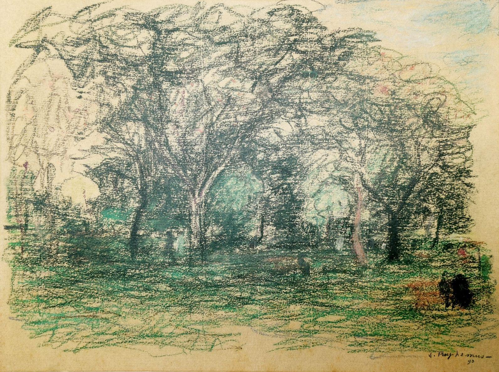 Paysage, pastel sur papier, signé et daté 90, 22x29 cm