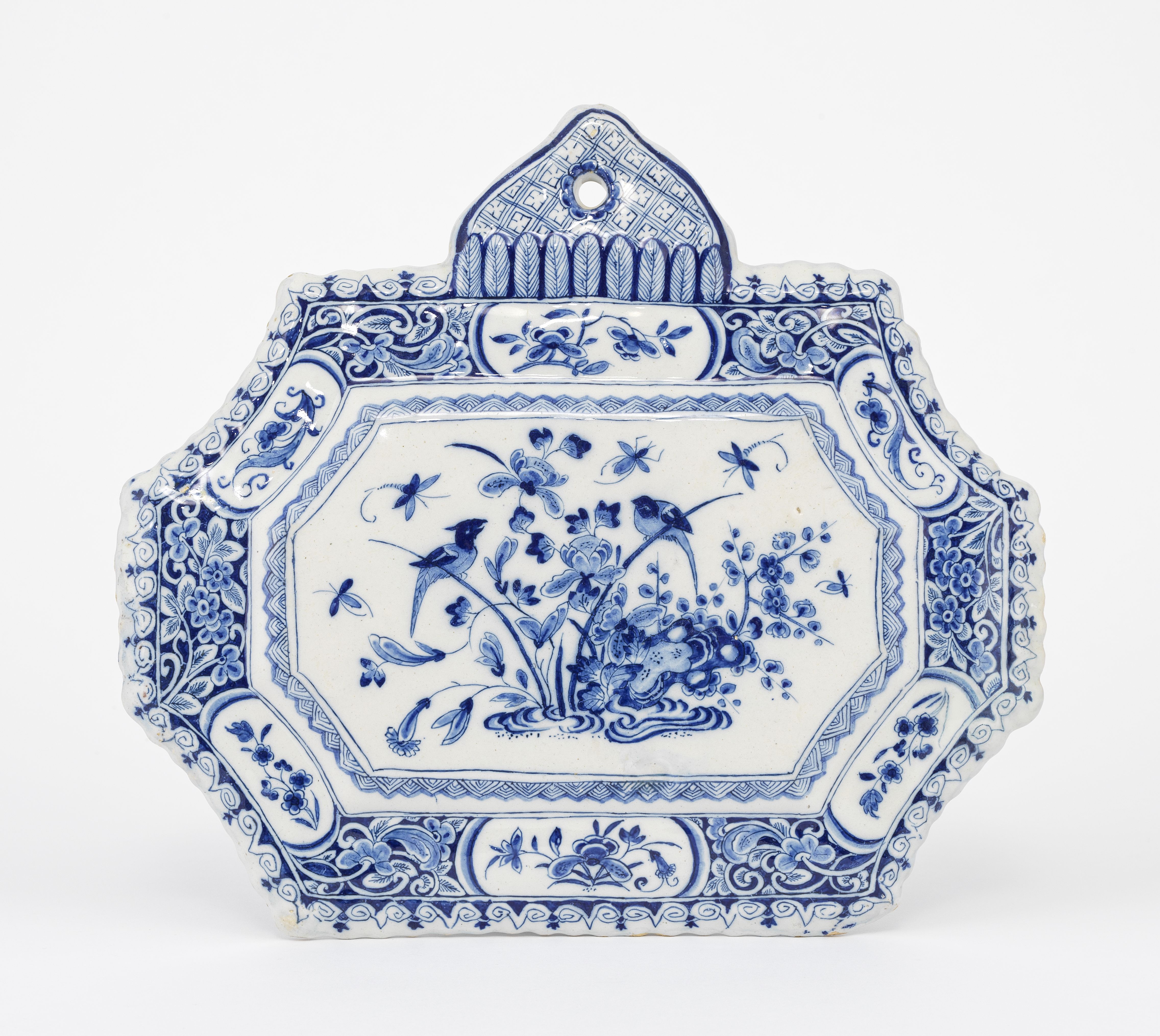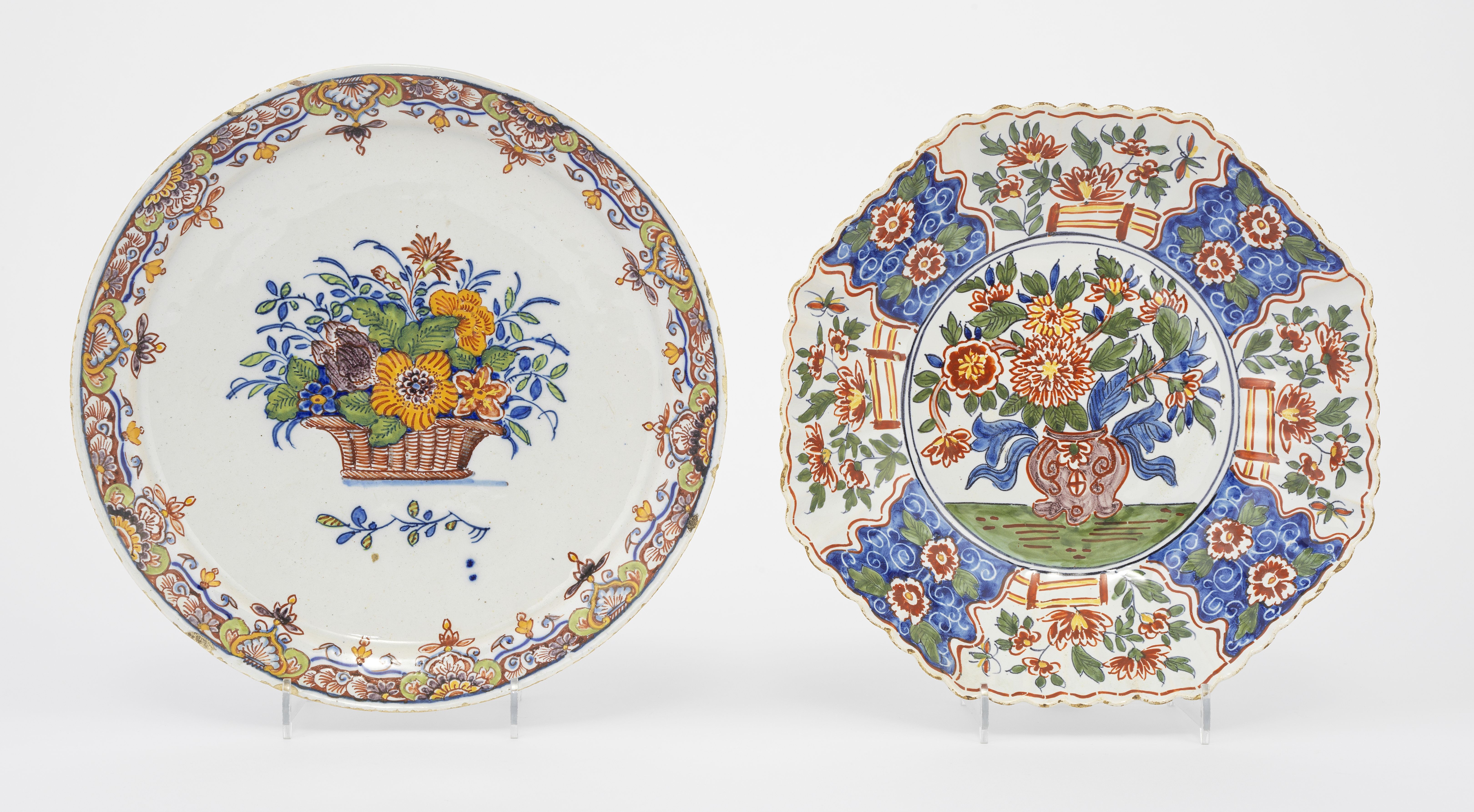 3921. Deux assiettes, Panier fleuri, une octogonale et l’autre ronde,...