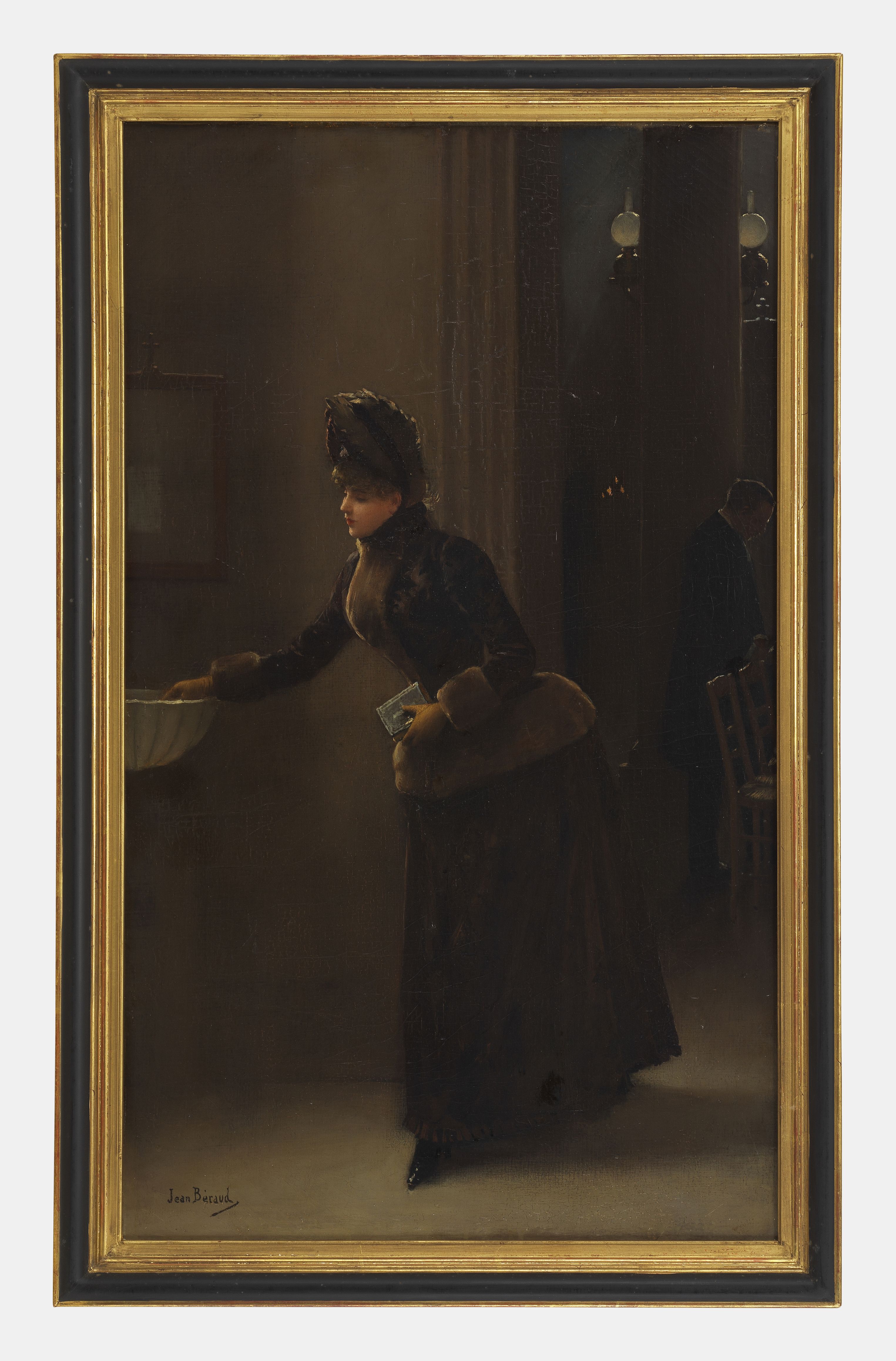 Femme élégante dans un vestibule, huile sur toile, signée, 65x39 cm. Provenance: Les Stern, une famille de collectionneurs.