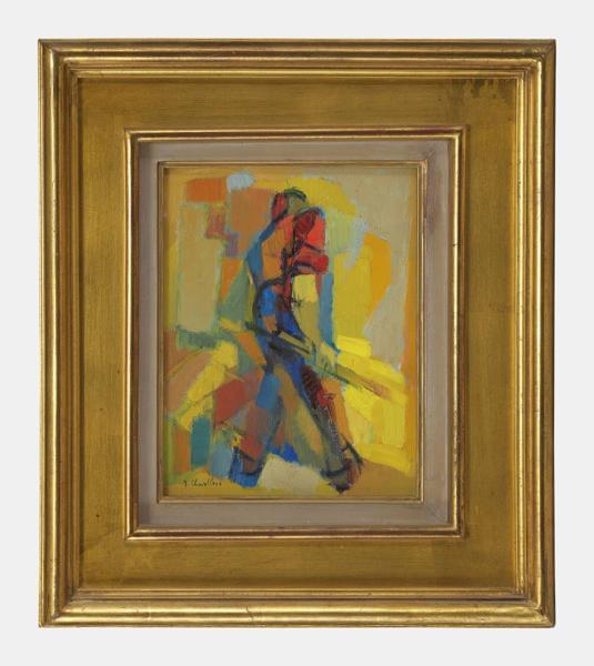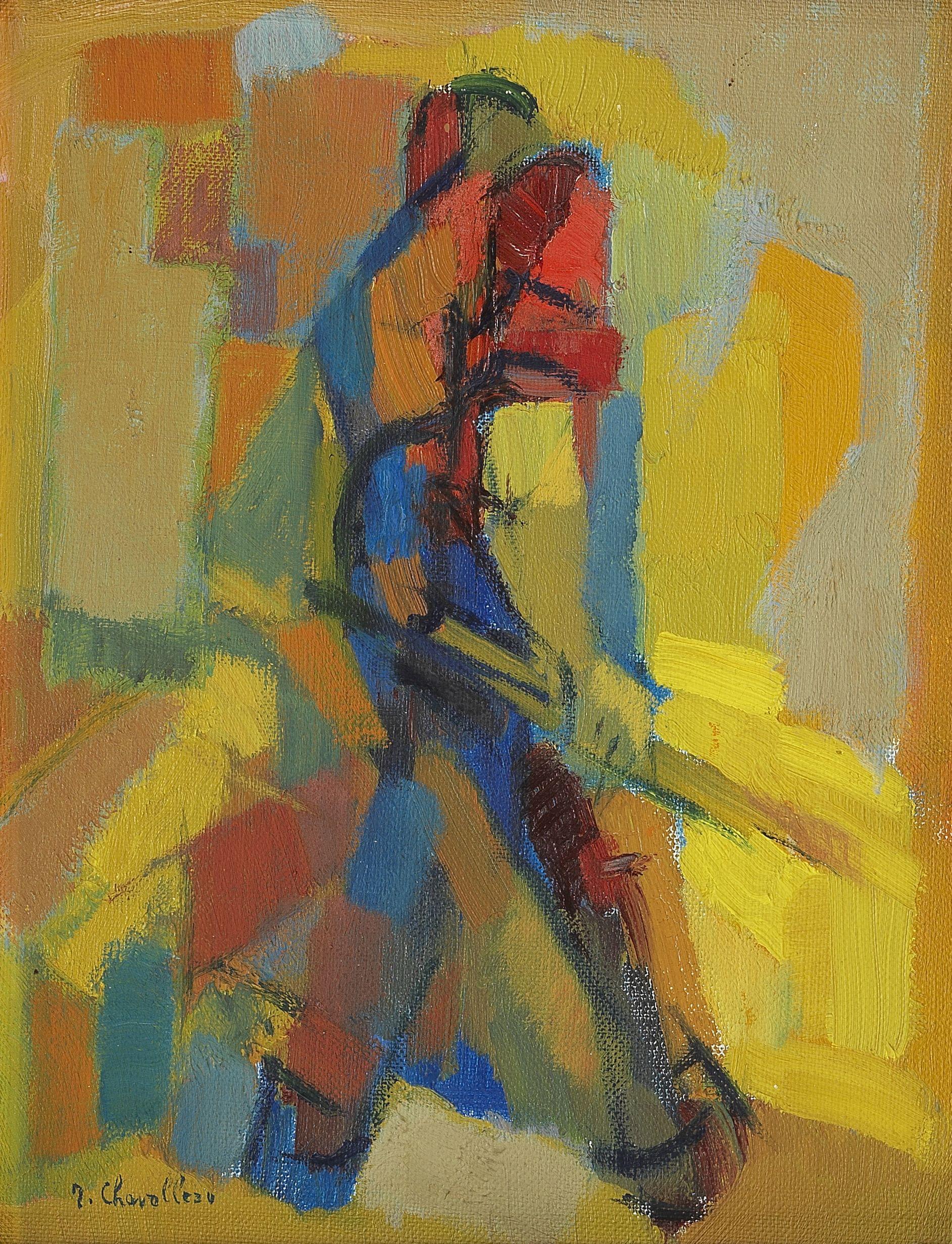 Personnage abstrait, huile sur toile, signée, 24x19 cm