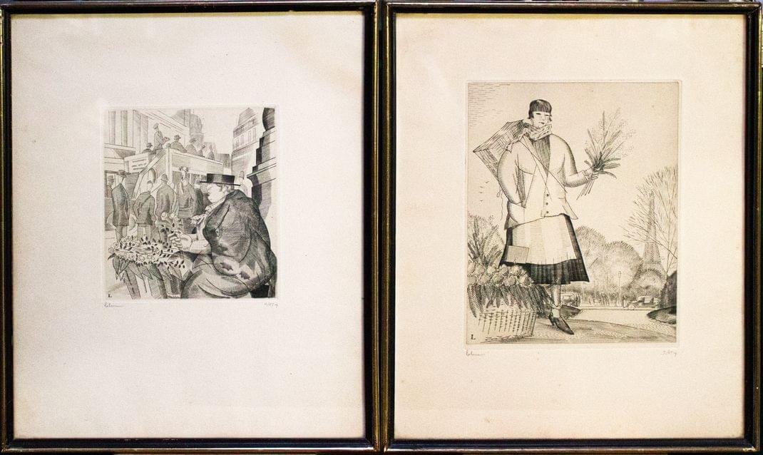 Vendeuses de fleurs, deux gravures monogrammées dans la masse et contresignées à la mine de plomb, 31 x 24 cm