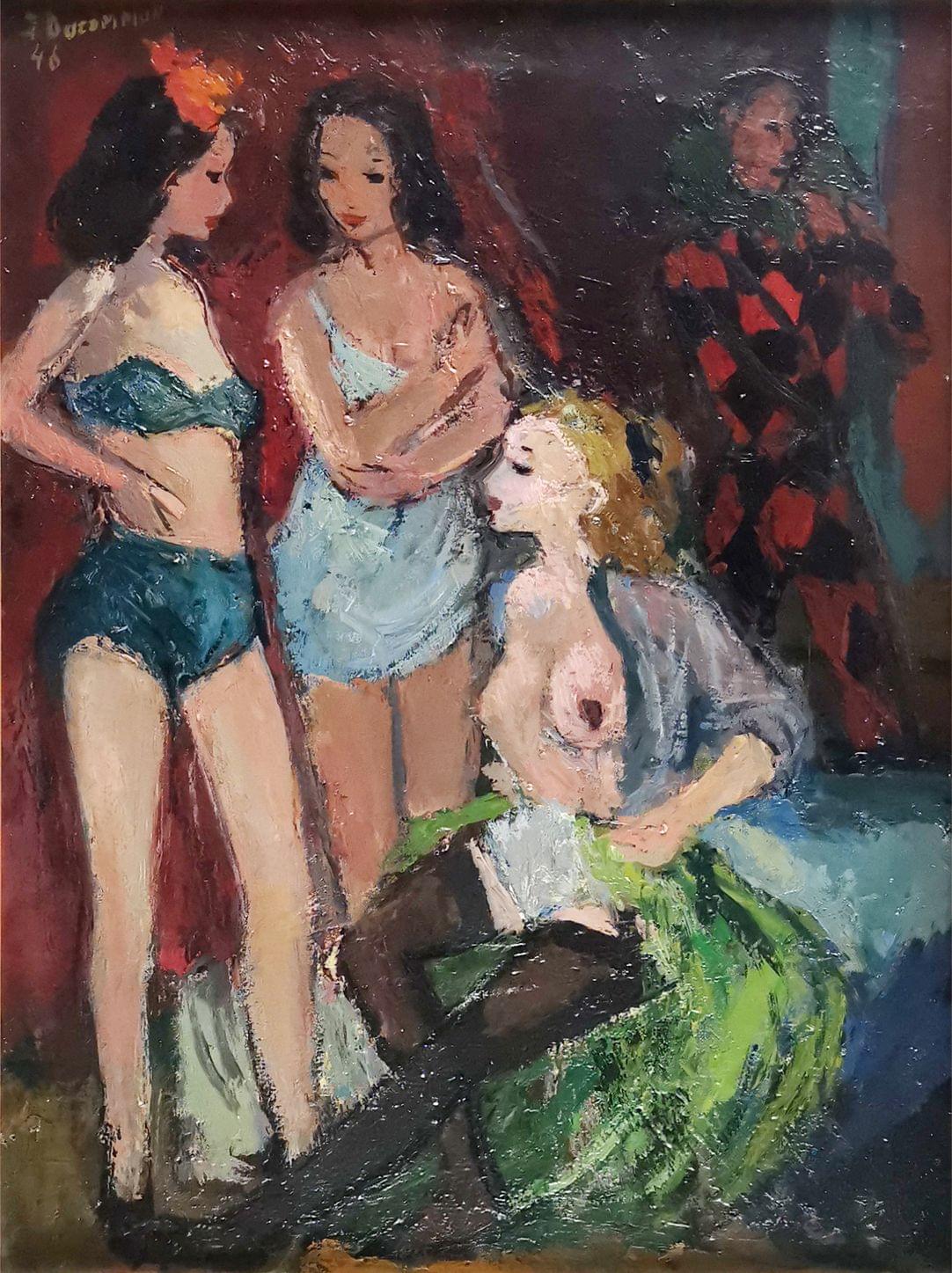 La cabine d’essayage du théâtre, huile sur toile, signée et datée 46, 58x38 cm