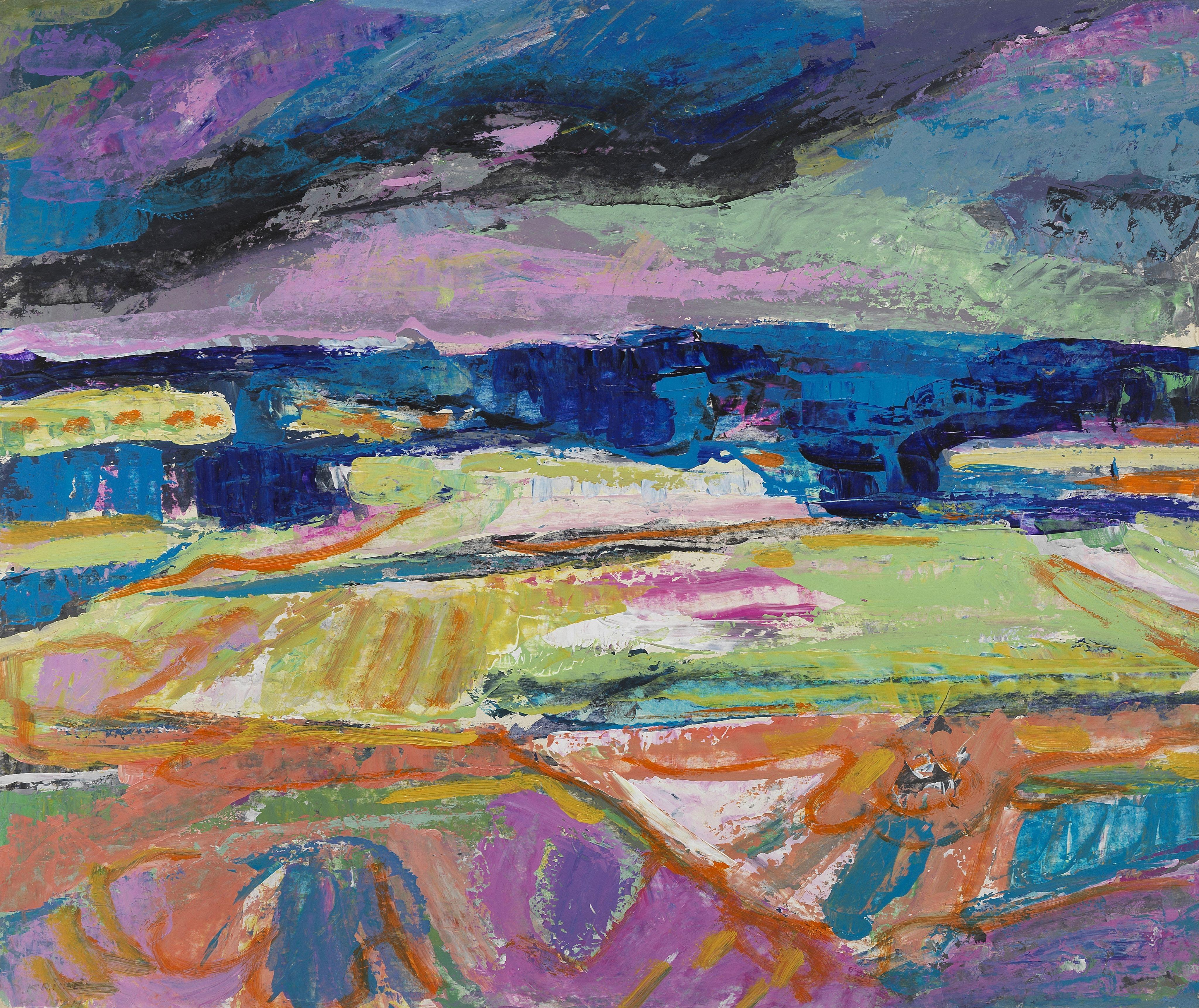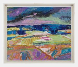 Paysage coloré, huile sur pavatex, signée, 50,5x60 cm