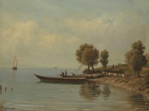 Ancien port de Versoix, huile sur carton, signée, 27x34,5 cm
