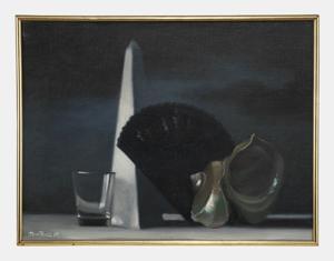 L'éventail, huile sur toile, signée et datée 1969, 41x54 cm