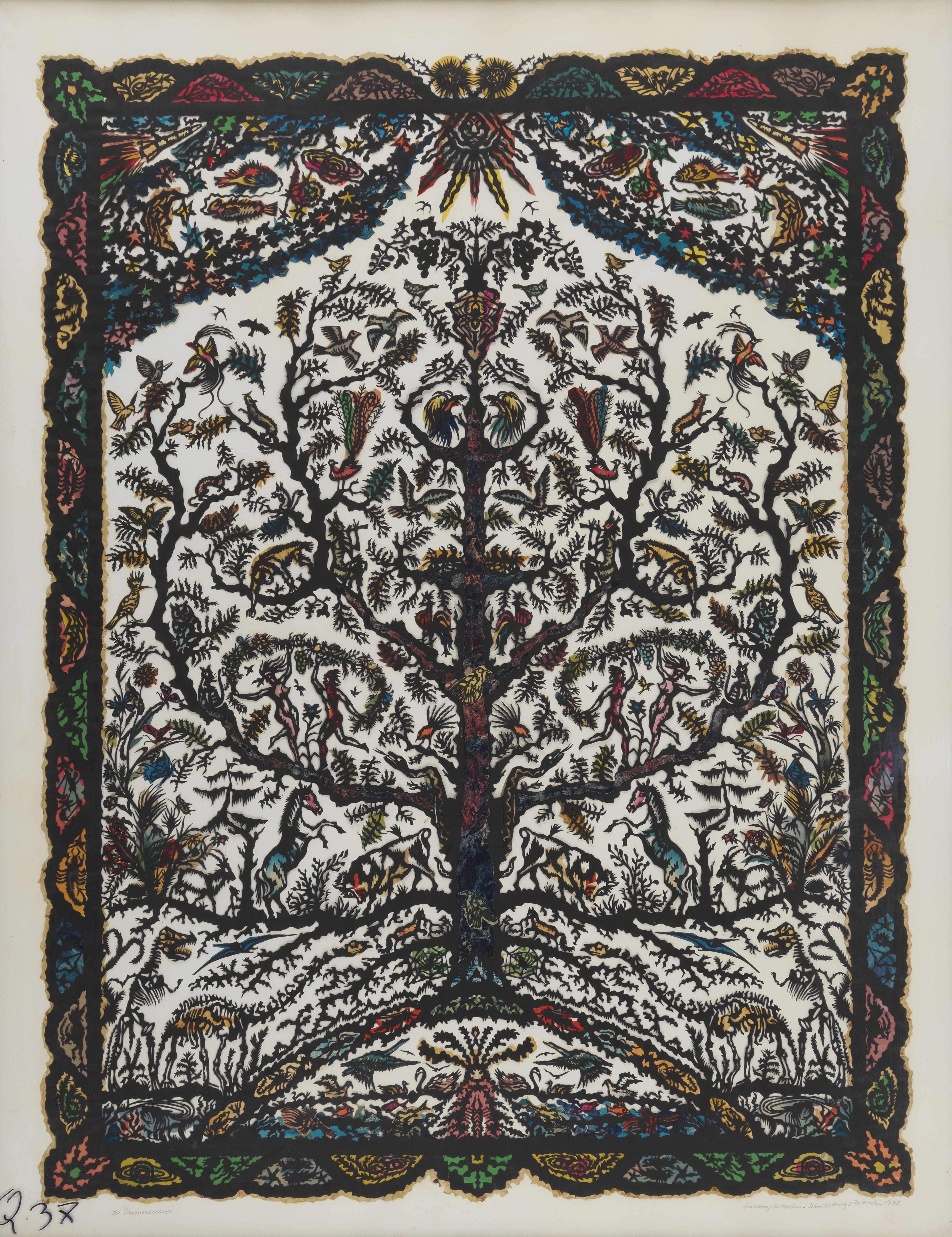 Universum, grand découpage, titré, signé et daté 1971, 100x75 cm
