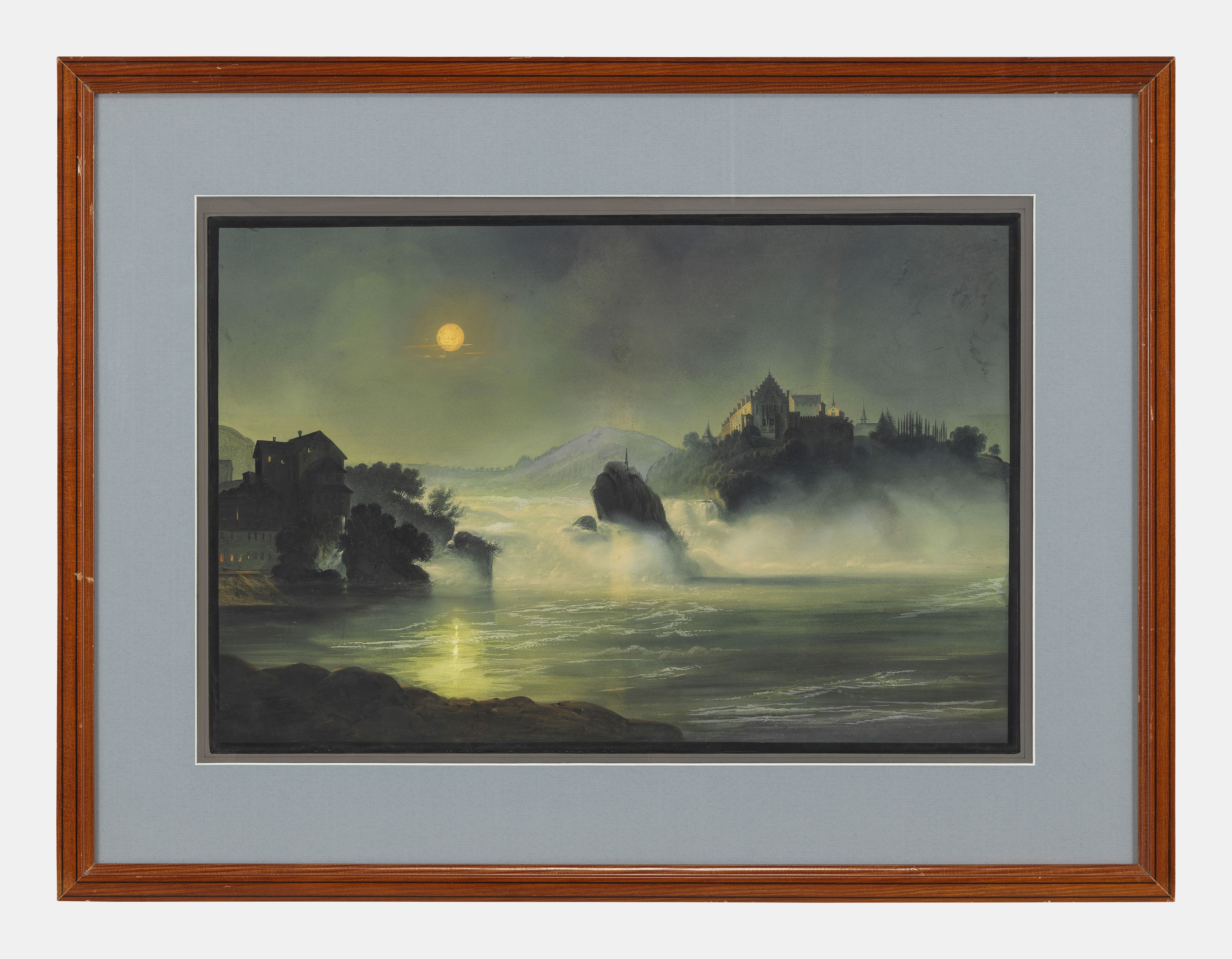 Vue du château de Laufen près de Schaffhausen, Suisse, gouache sur papier, signée, 32x45 cm