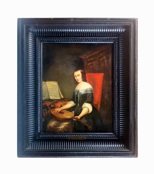 Musicienne, huile sur toile, signée, 28,5x23 cm