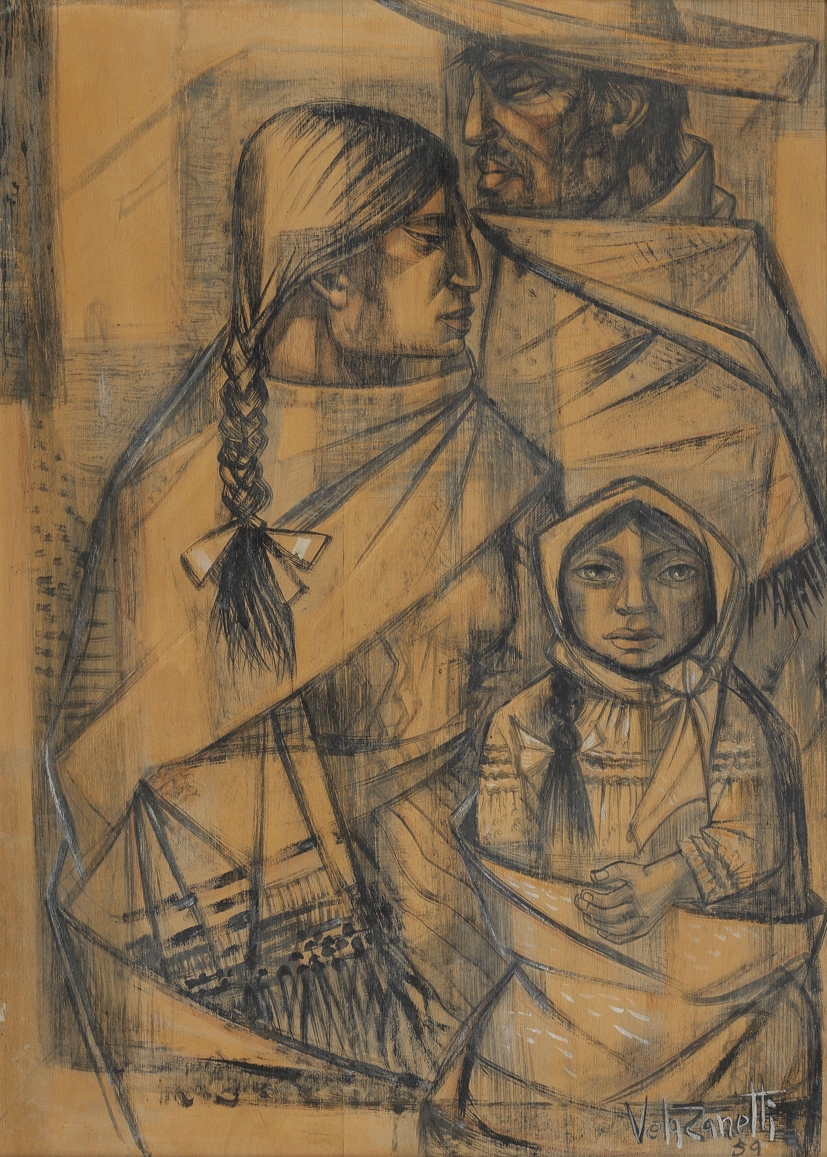 Visages, acrylique sur toile, signée et datée 67, 150x110 cm