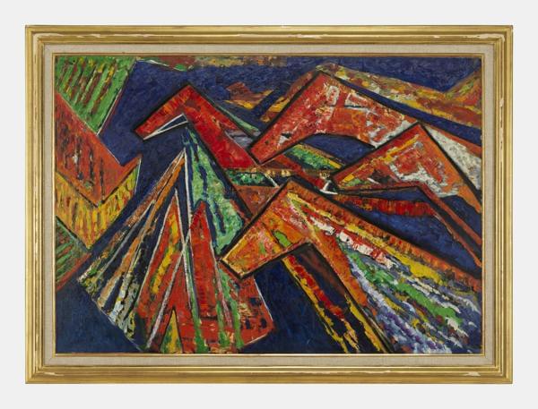 Composition abstraite, huile sur carton, 100x70 cm