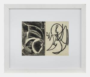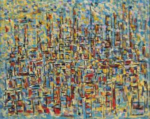 Abstraction sur fond bleu, gouache et aquarelle, signée et datée...