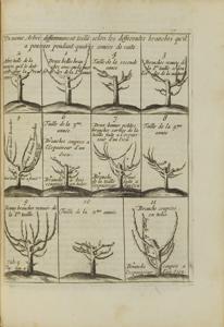 Deux tomes en un vol. in 4°, basane brune, dos à nerfs orné. Reliure de l’époque (il manque le premier f. blanc et le portrait en frontispice). Exemplaire de la deuxième édition, comprenant 13 pl. gravées. L’exemplaire est complet du Traité de la culture des Orangers, du Parfait Jardinier et de la Nouvelle Instruction pour la culture des fleurs.