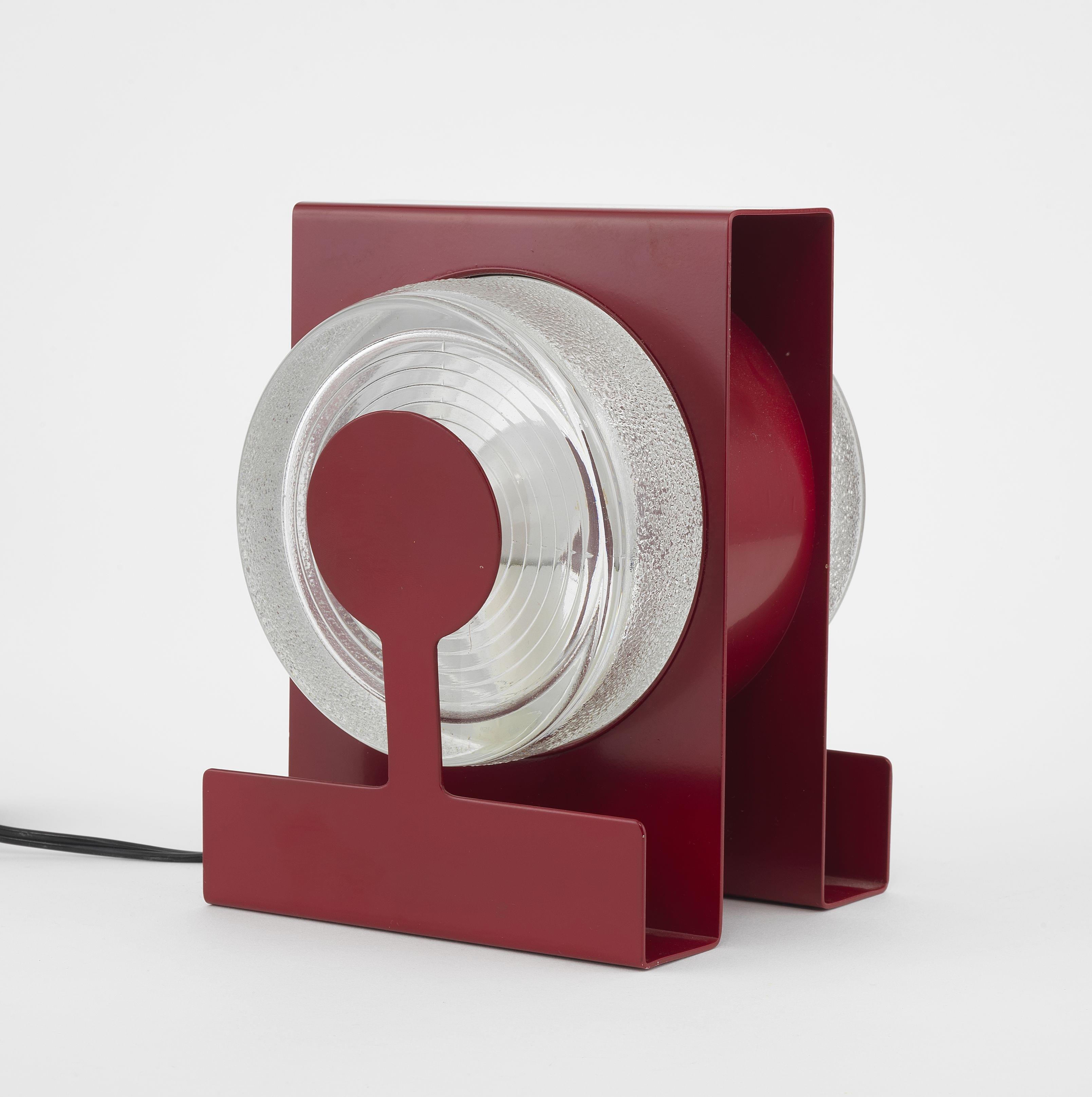 Verre moulé pressé et armature en acier laqué rouge, H 21,5 cm