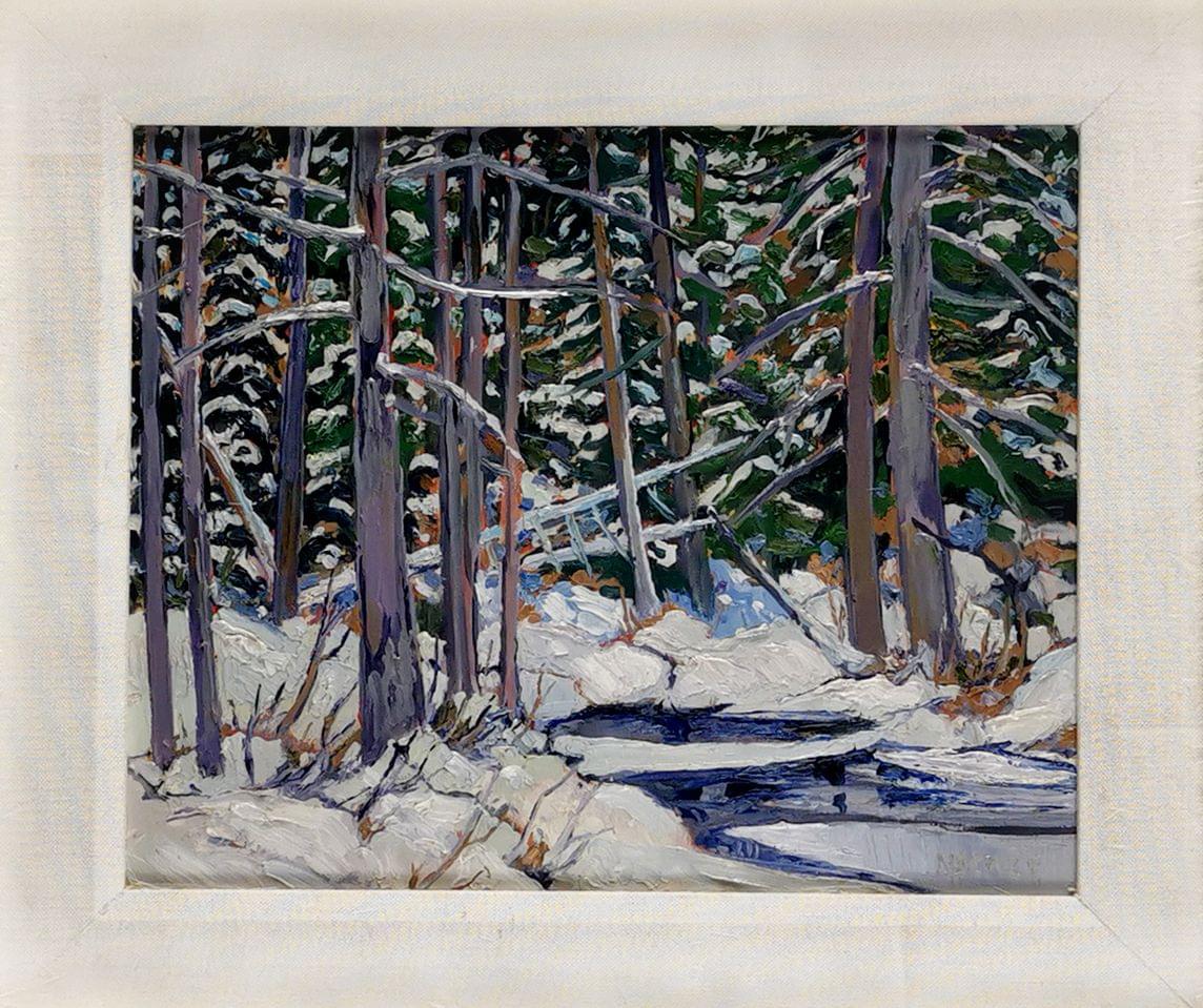 Paire de paysages d'hiver, deux huiles sur pavatex, signées au dos, 25x30 cm