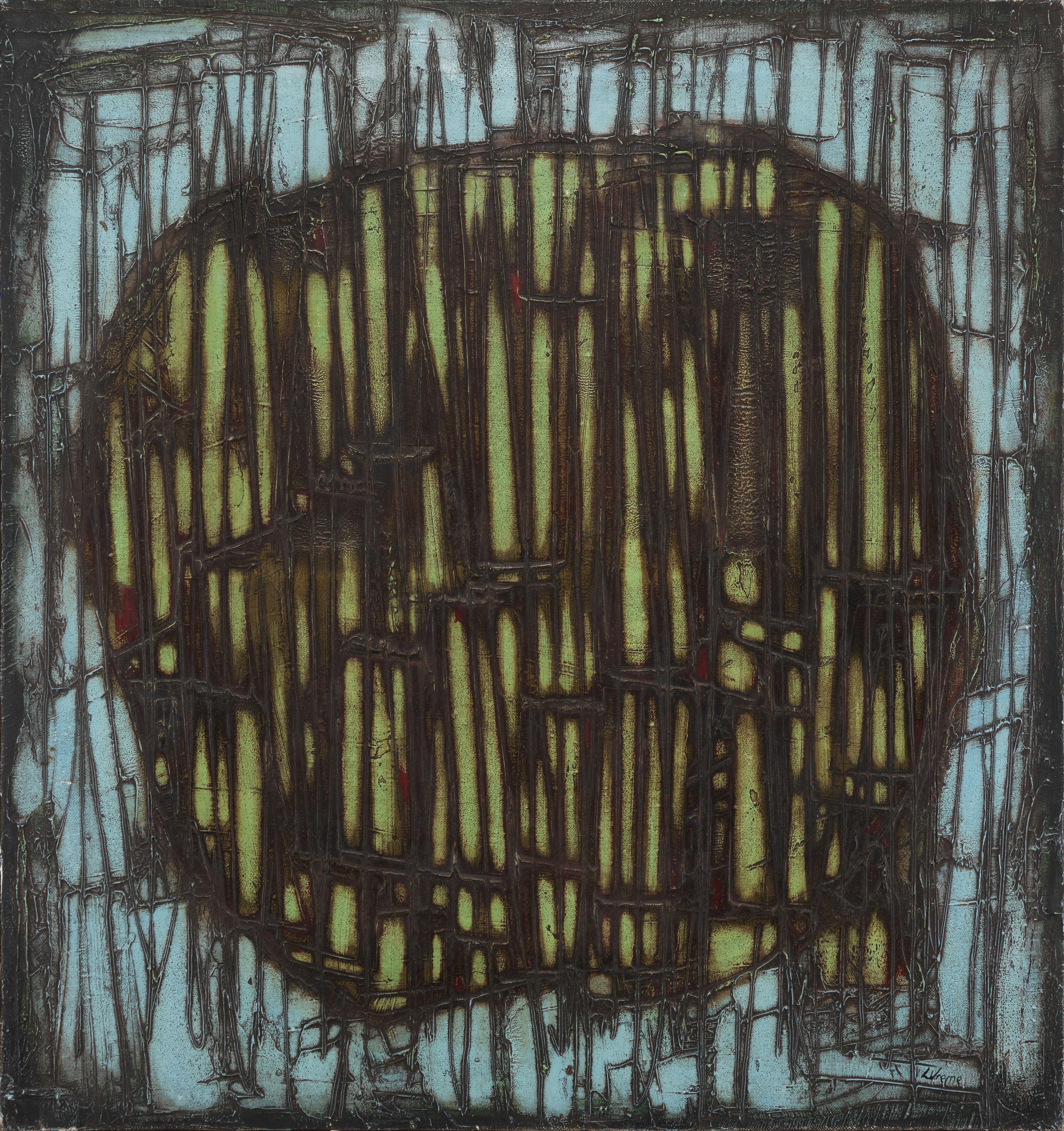 Léopard aux aguets, huile sur toile, signée, 24,5x35,5 cmProvena...