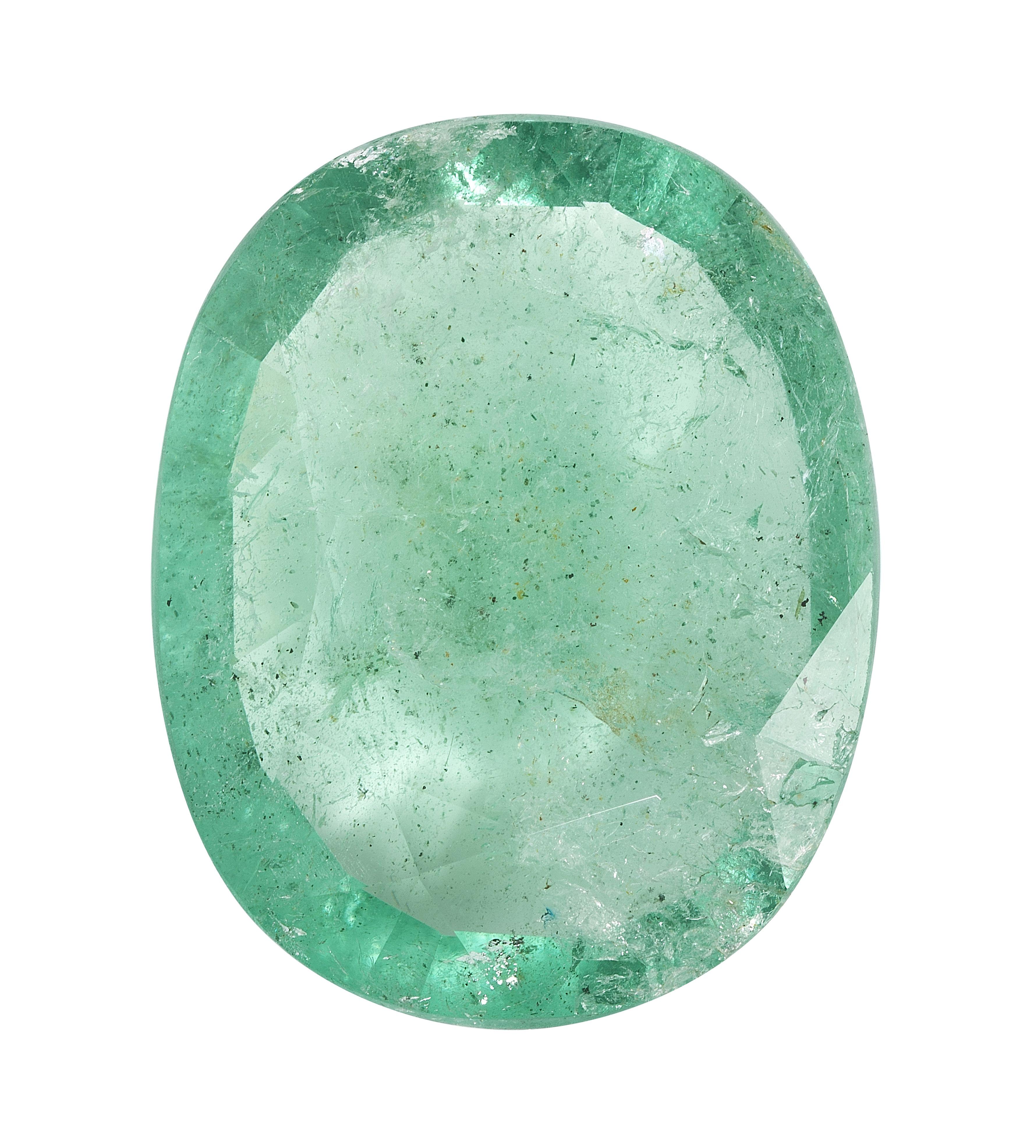 Une émeraude "minor oil" taille ovale (19,52 ct) et un lot de quatre émeraudes "minor oil" taille ovale (total 7,73 ct), accompagnées de certificats GFCO. Pour les lots précédés d'un *, la TVA de 7,7% est due sur l'entier du prix d'adjudication.