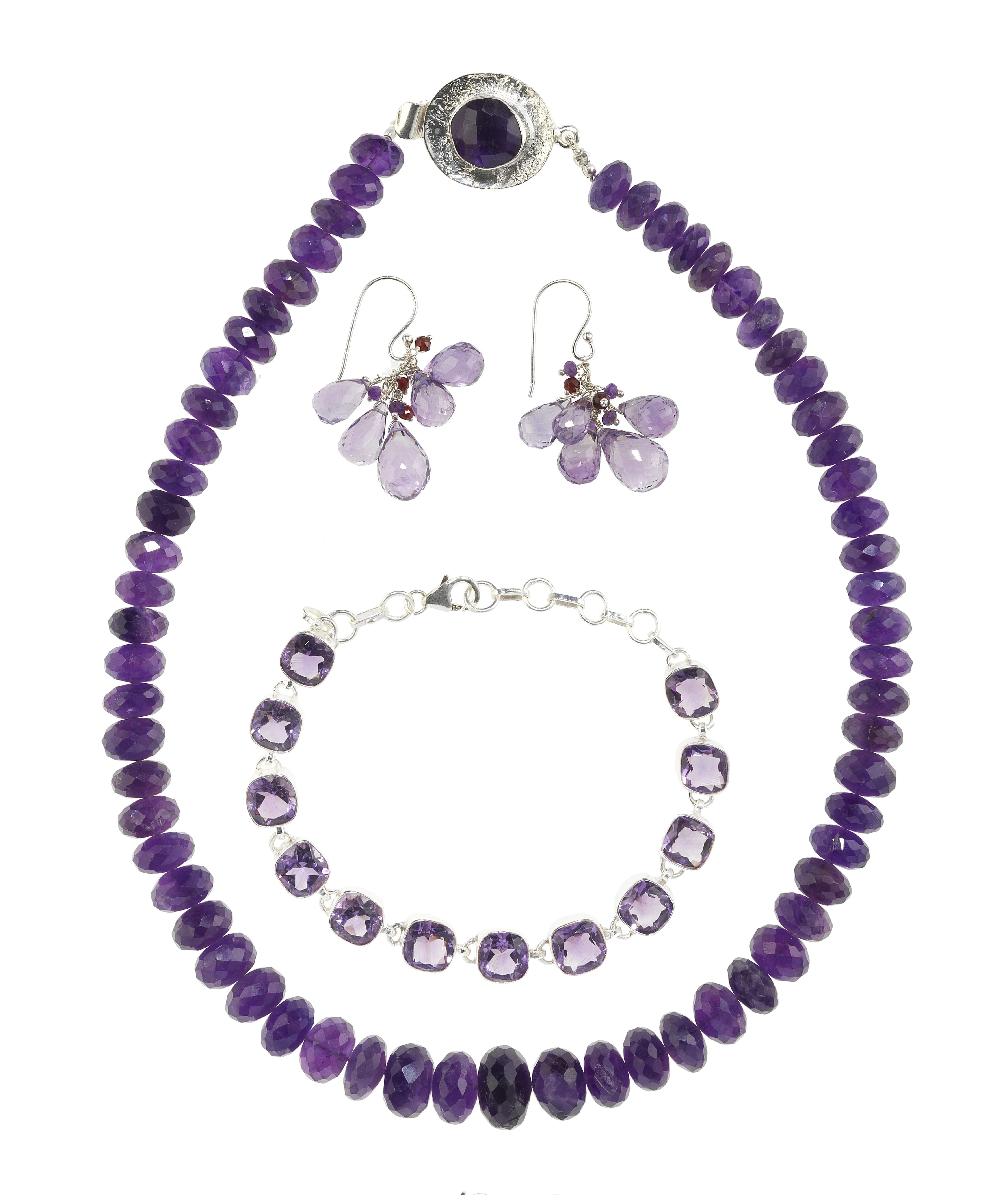 3131. *Lot d'un collier, d'un bracelet et de pendants d'oreilles sertis d'améthystes facettées