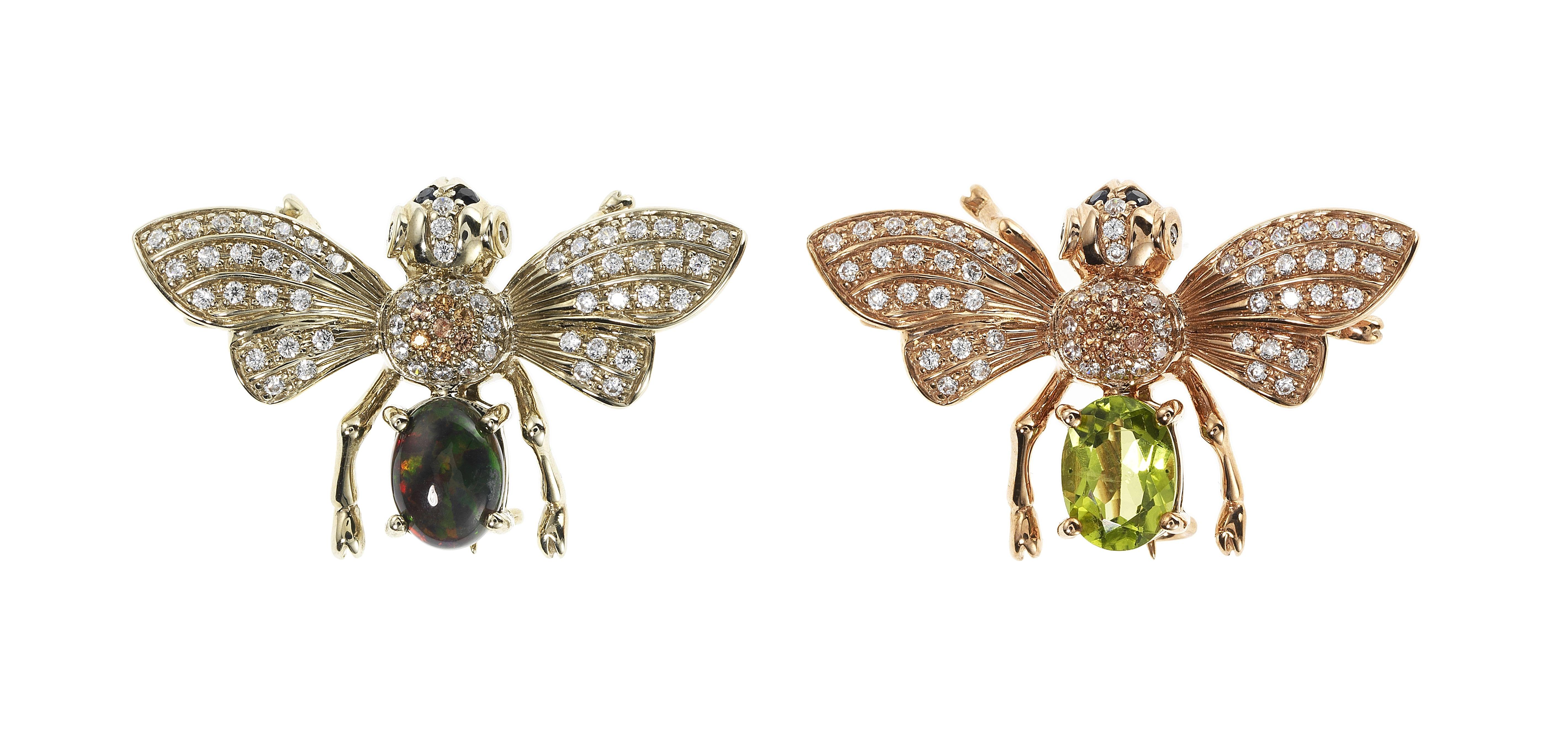 3255. *Lot de deux broches à motifs d'abeilles