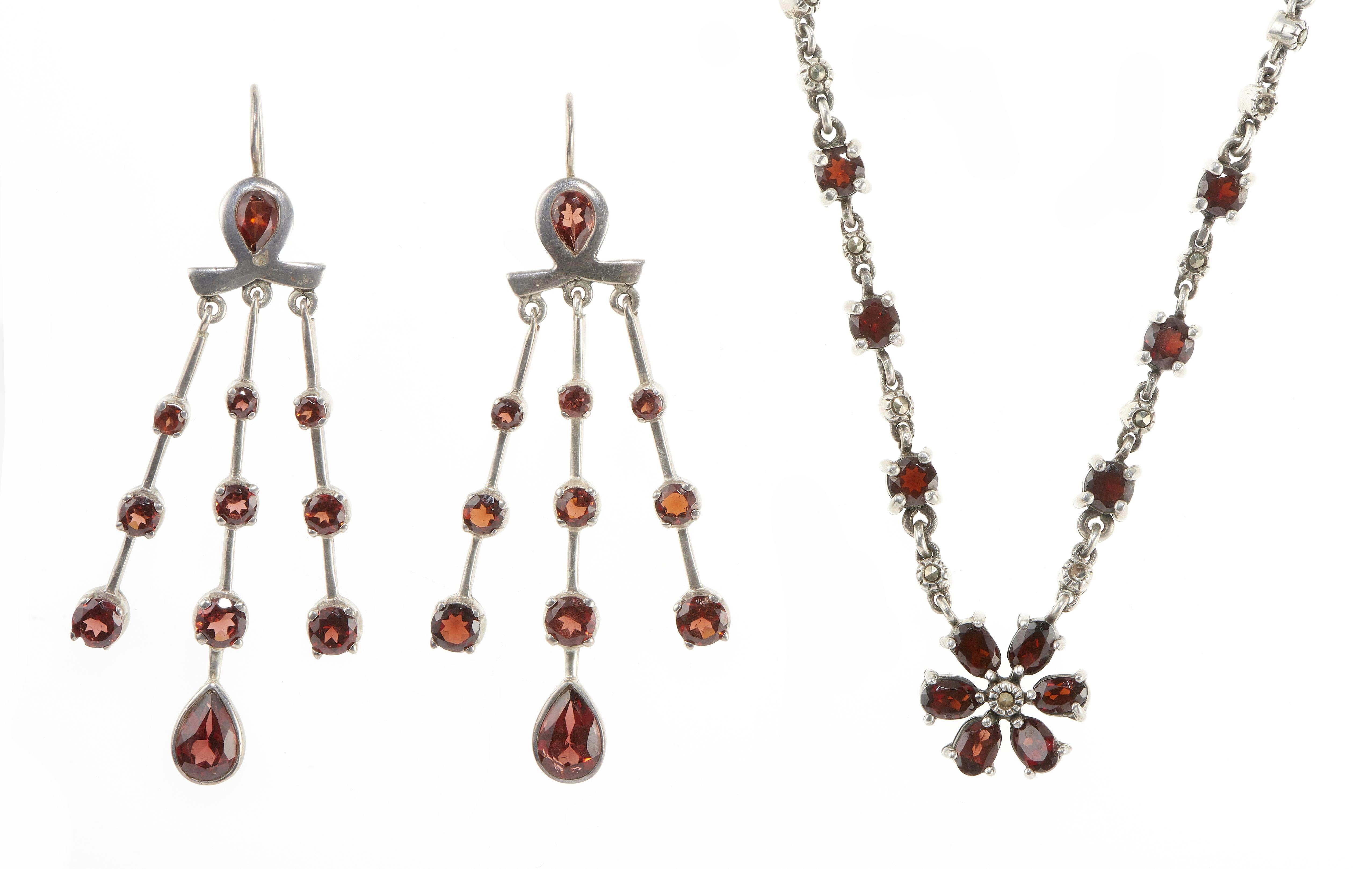 4152. Lot d'un collier et d'une paire de pendants d'oreilles sertis de grenats