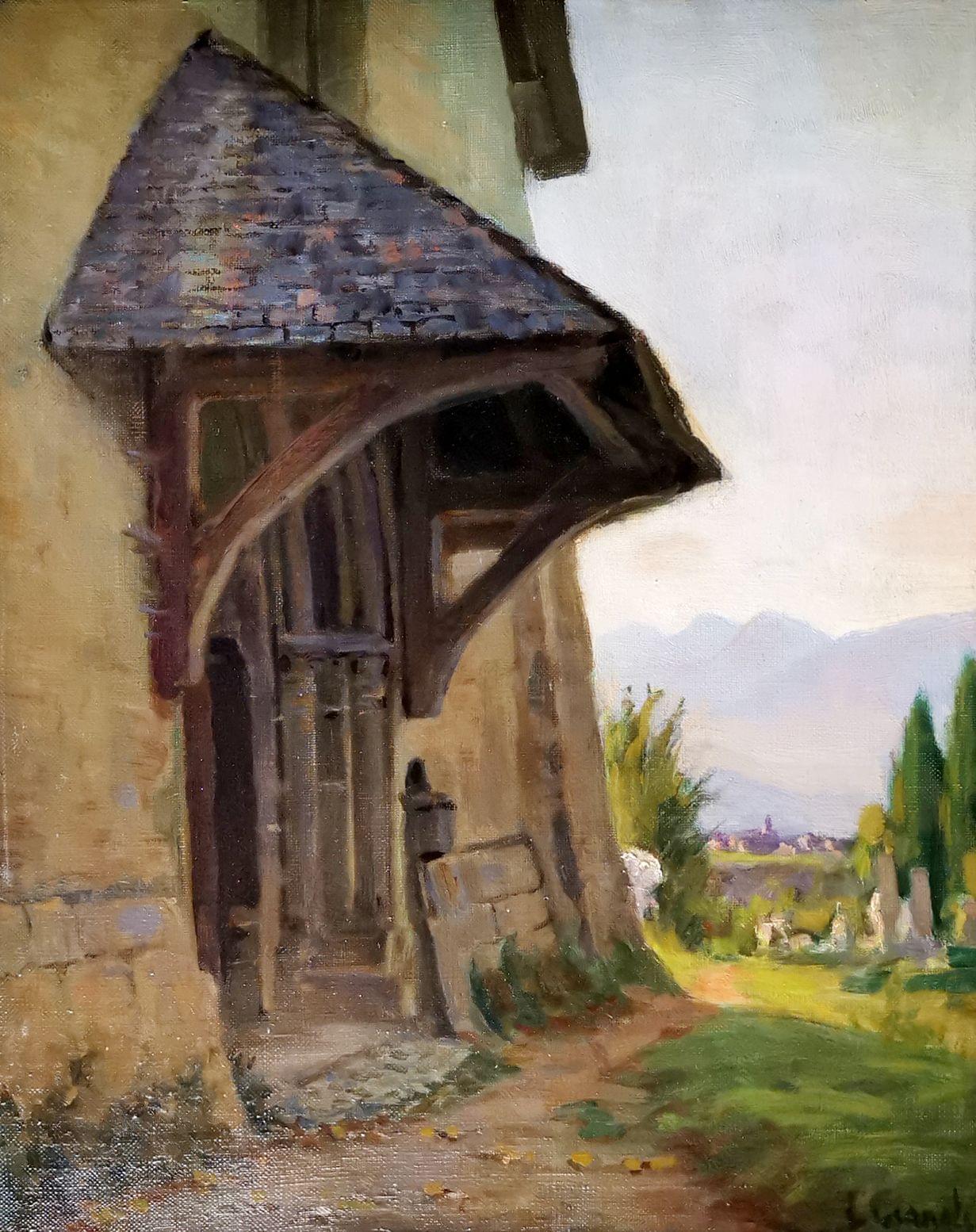 Porche de l'église de Bonne, huile sur toile, signée, 41x33 cm. Catalogue de l' Exposition rétrospective en souvenir de Louis Gianoli artiste peintre