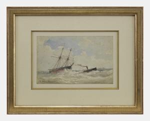 Marine, aquarelle et gouache sur papier, signée, 12x19 cm