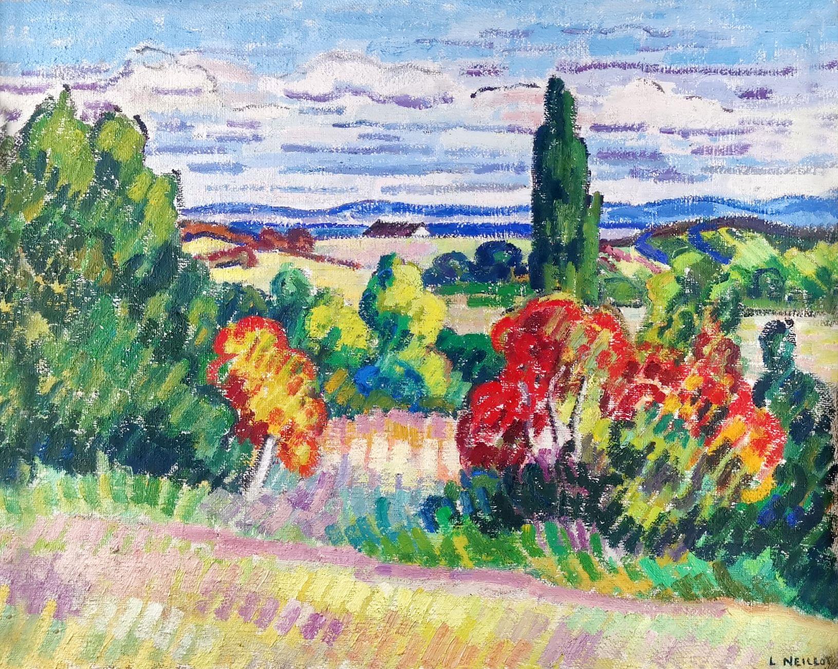 Paysage de Taxat, huile sur toile, signée, 60x73 cm