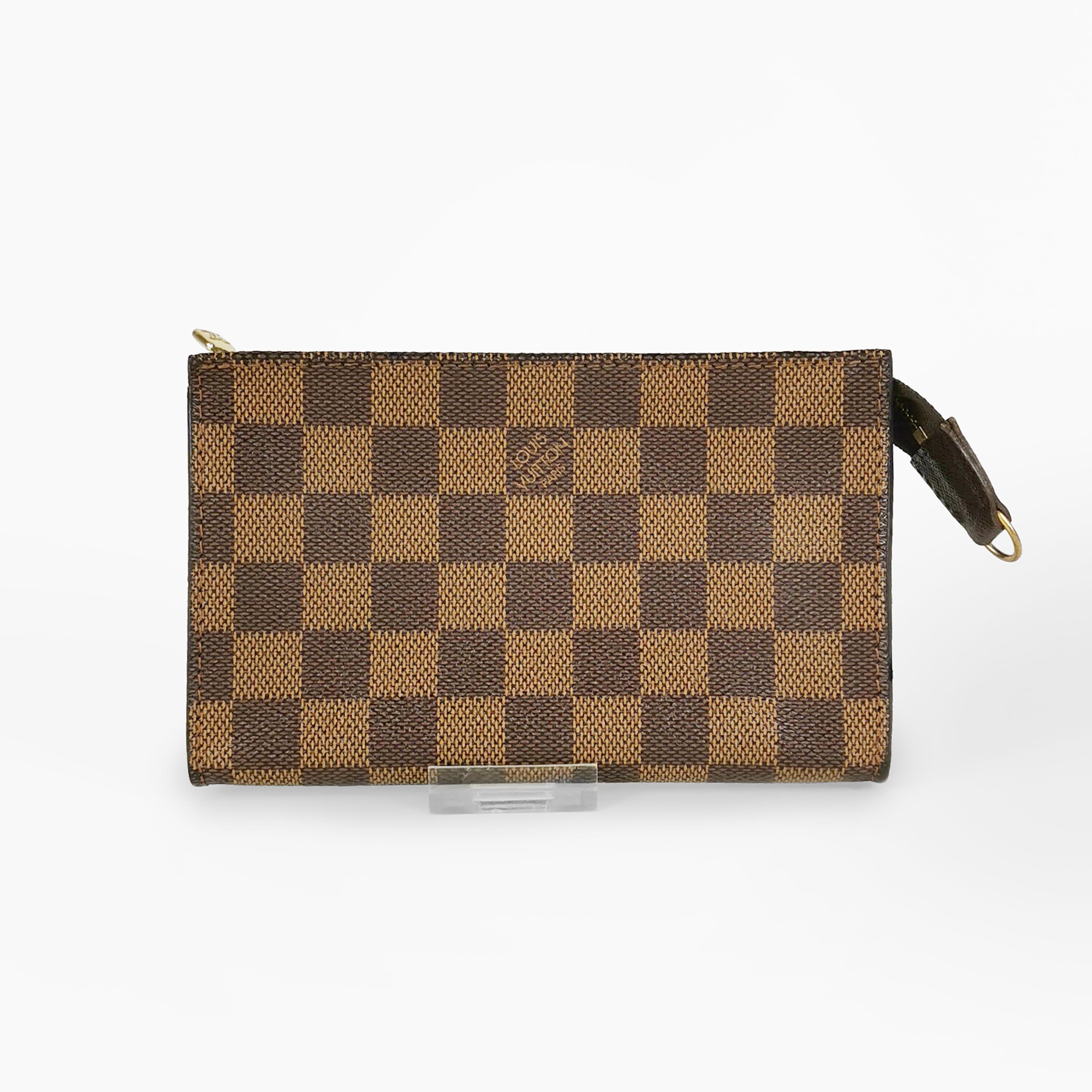 Toile enduite damier Ebène, intérieur en microfibre, fermeture zippée, 11x18 cm. Provenance : collection Marisa Perret-Rezzonico