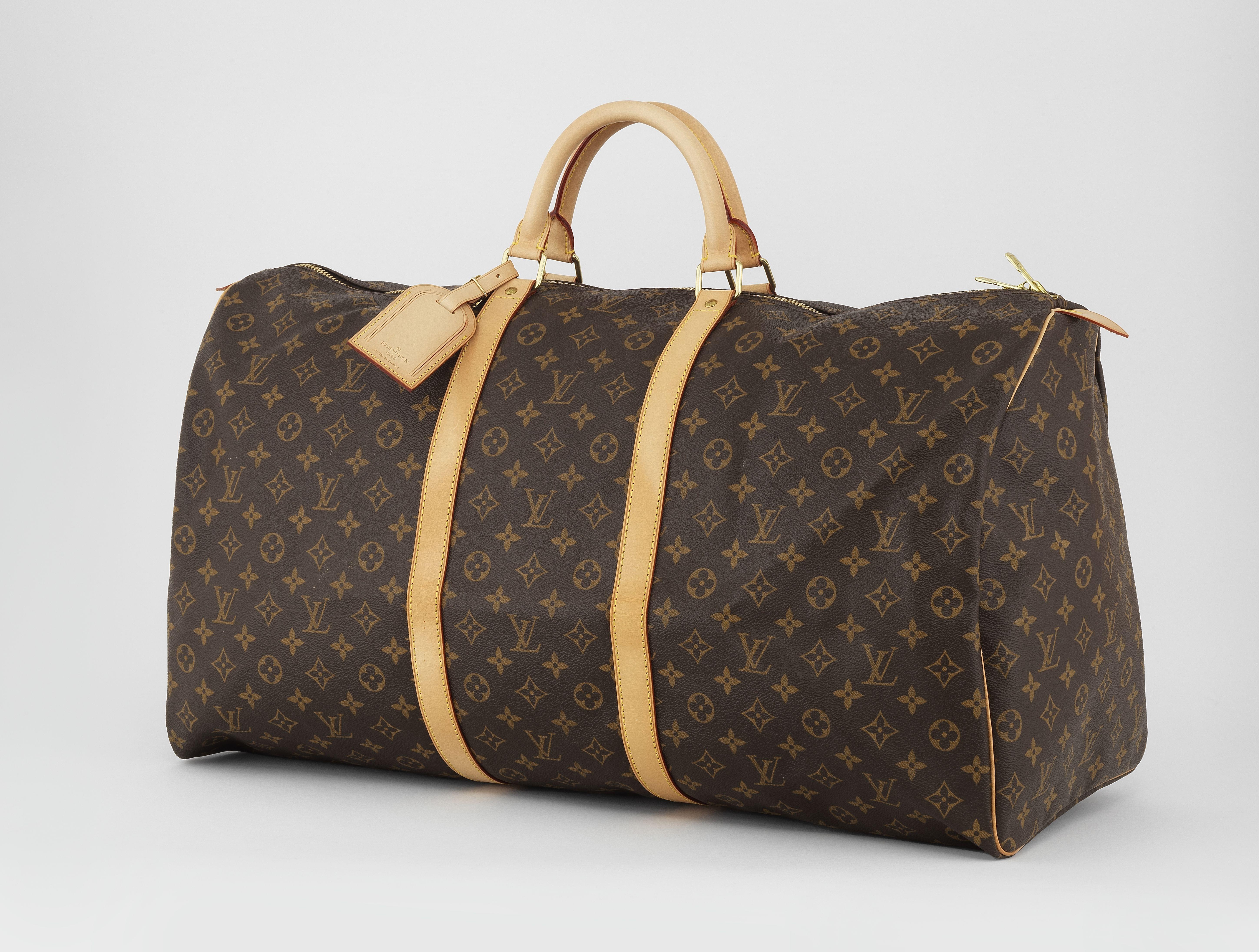 Toile Monogram et cuir naturel, intérieur en toile marron, garniture en métal doré, env. 31x60x25 cm