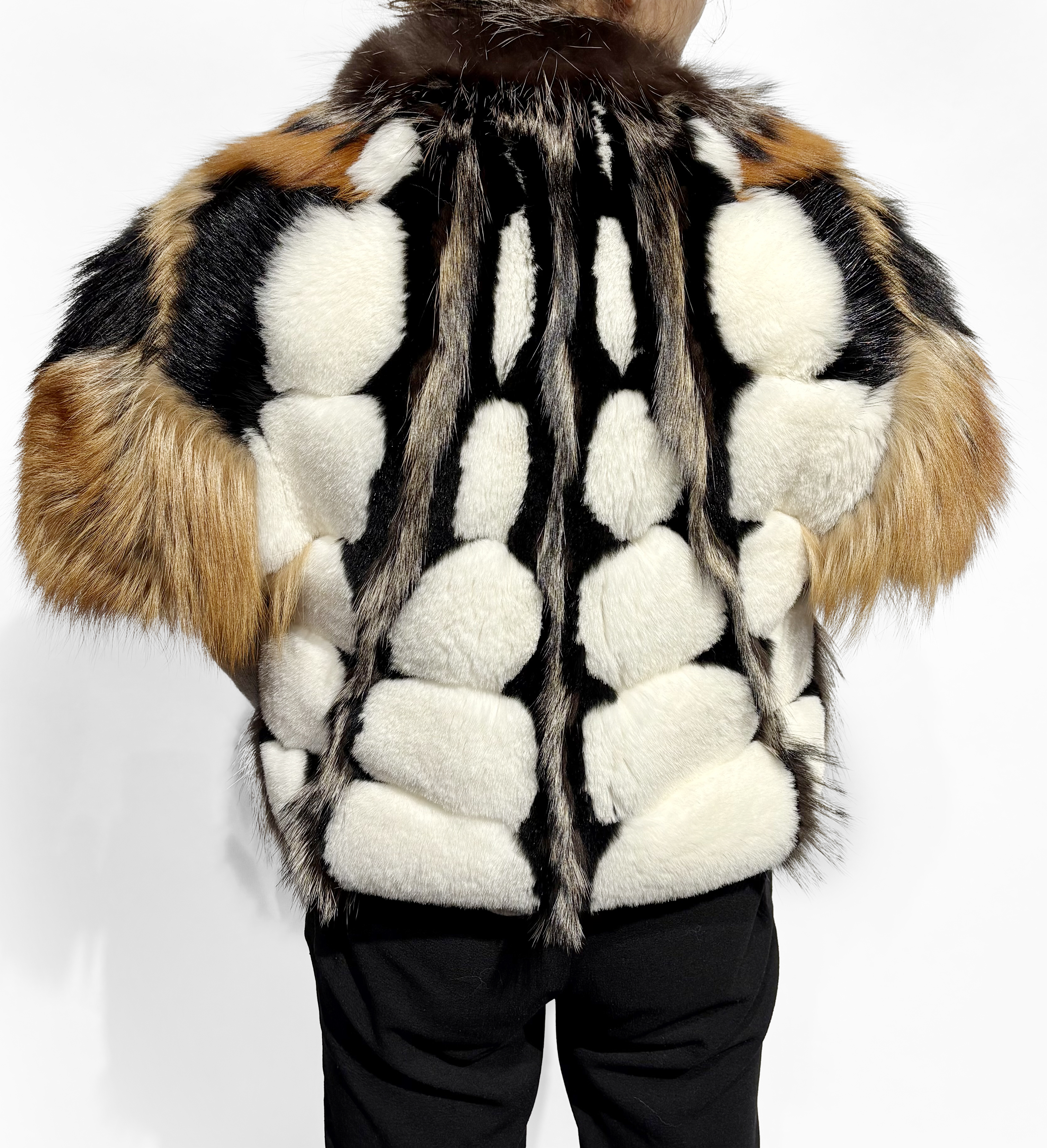 Fourrure de renard, coyote et castor, intérieur en soie noire, mancherons, T 36