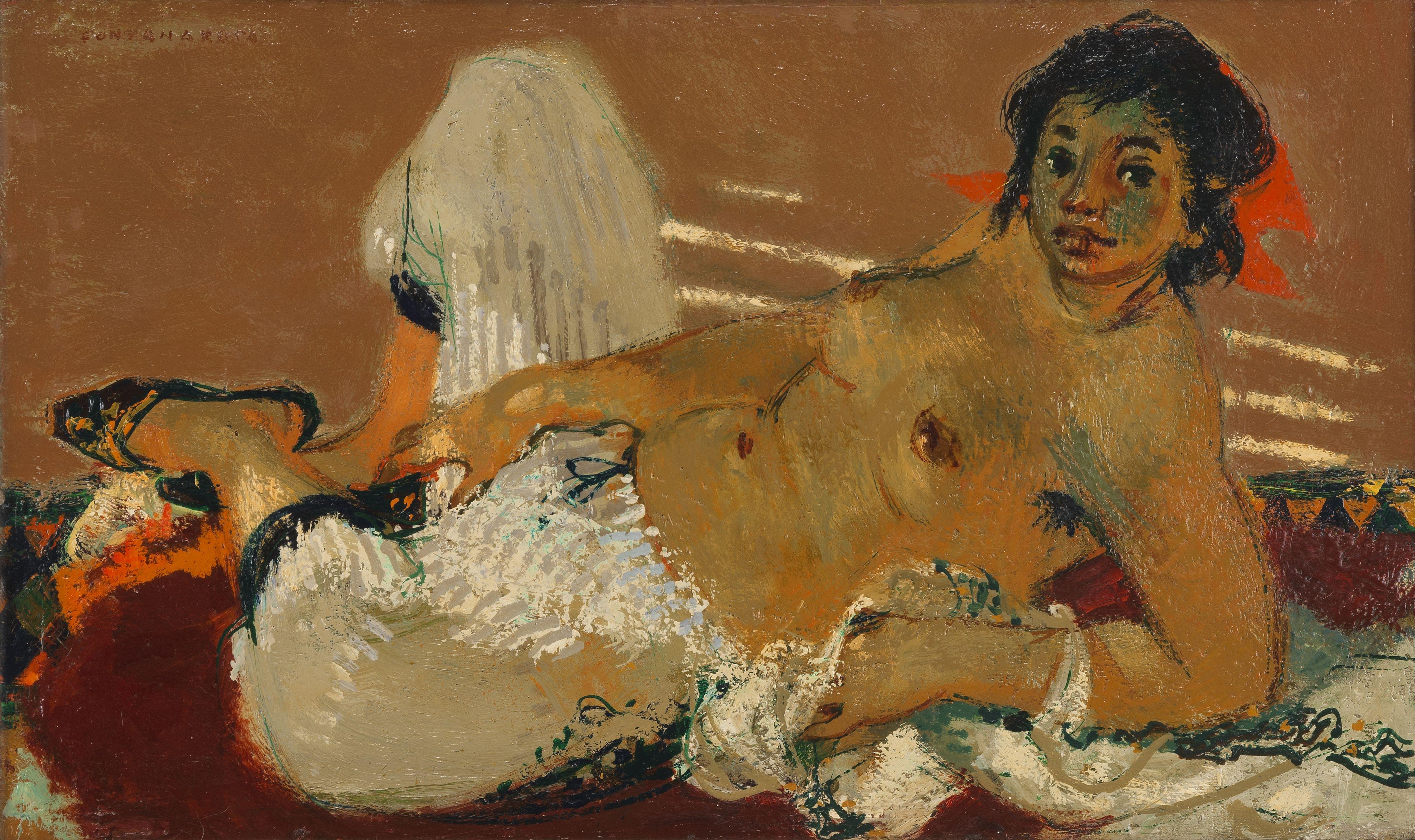 Bouquet de pivoines, huile sur toile, signée et datée 1888, 50x4...