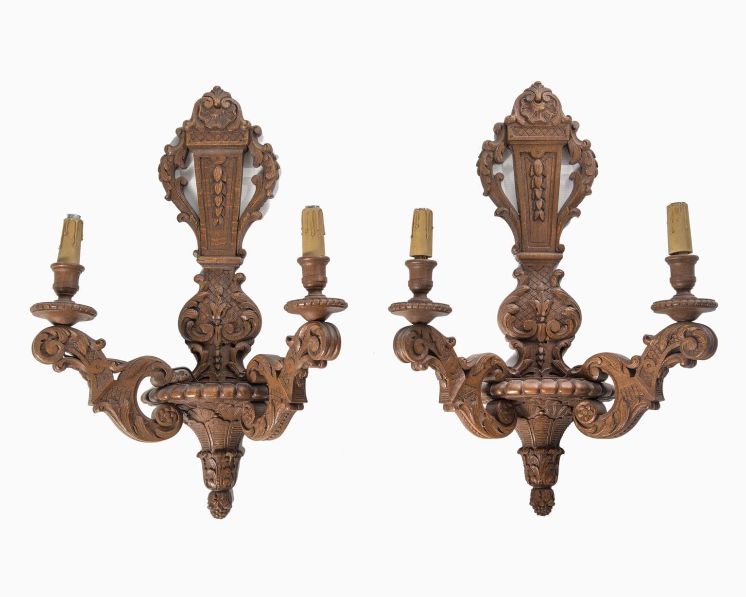 Bois naturel sculpté de rinceaux, feuilles d'acanthes et enroulement, H 85 cm, D 79 cm