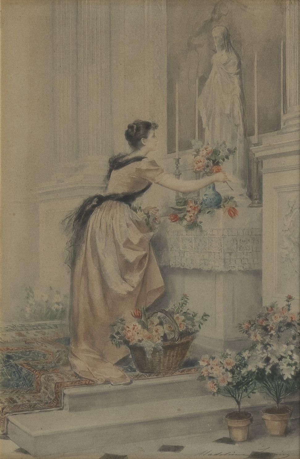 Offrande à la Vierge, aquarelle sur papier, 20x14 cm