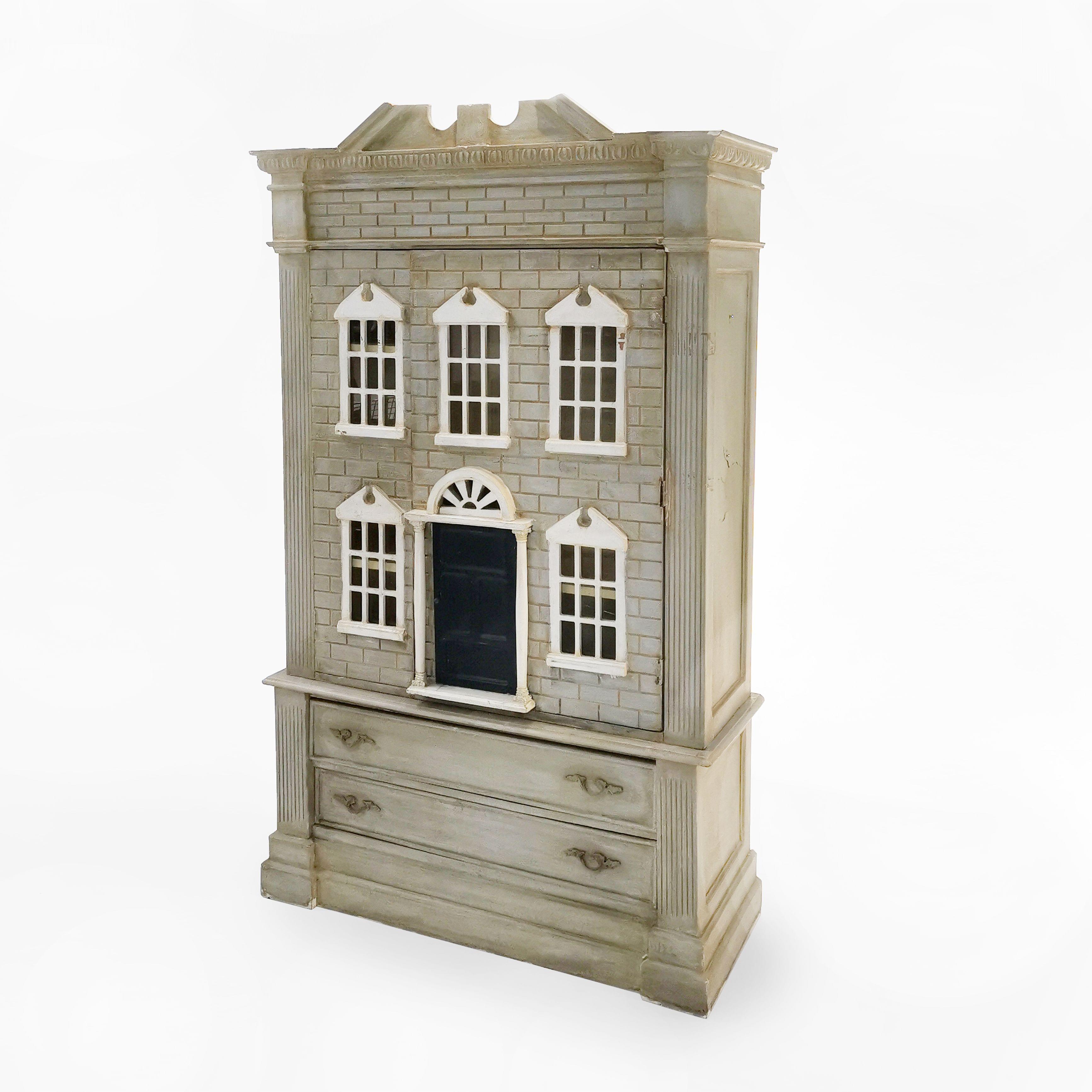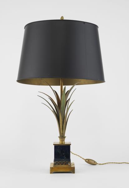 Laiton, métal laqué marbré bleu, signée, H 64 cm