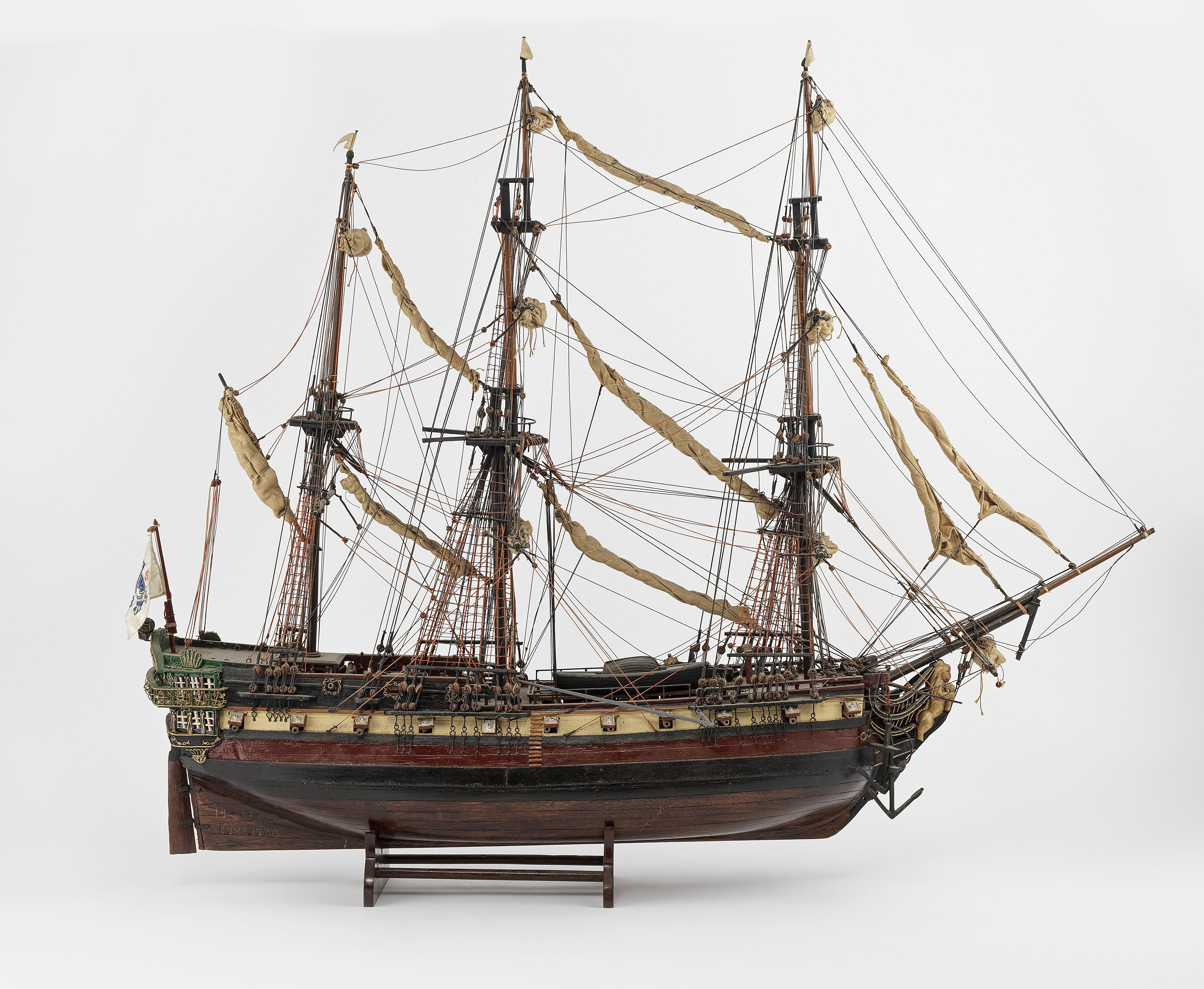 Bois au naturel et bois peint, tissu, L 70 cm