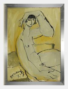 Le couple jaune sur fond noir, huile sur panneau, signée et daté...
