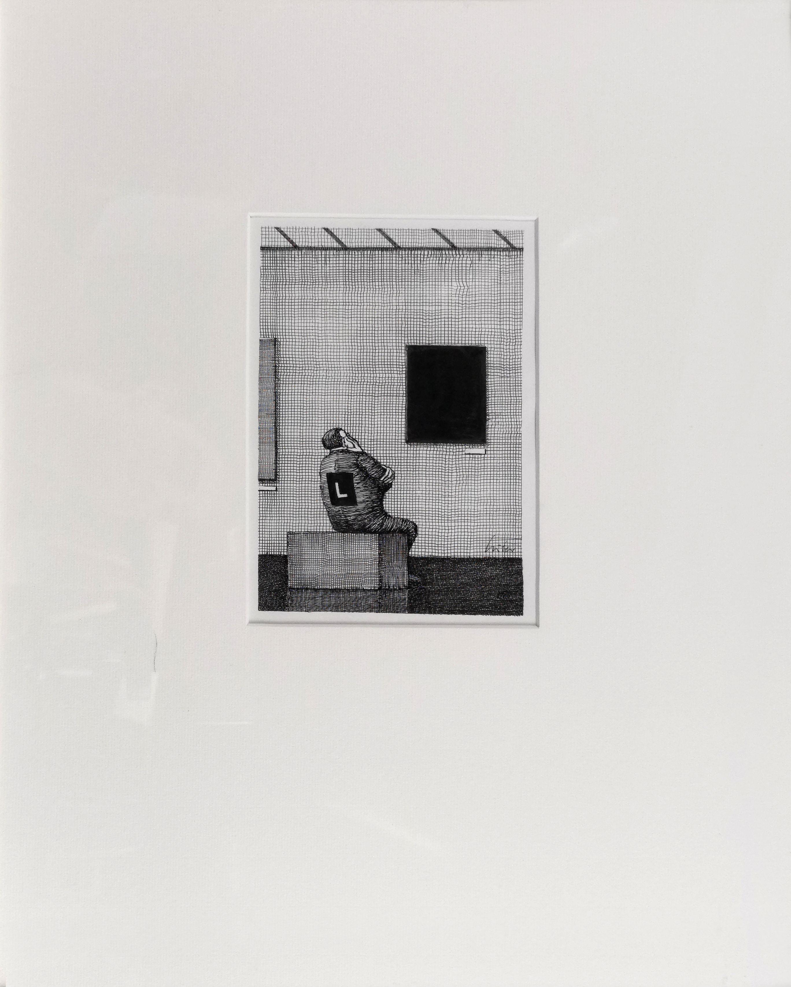 L'apprenti spectateur, plume et encre de Chine sur papier, signée, 20x14,5 cm.